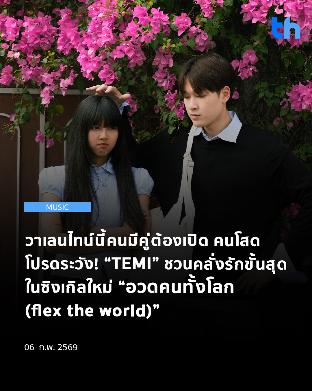 หลังจากปล่อยเพลงฮิตติดชาร์ตอย่าง “คุณนายตื่นสาย” ไปเมื่อปลายปีที่ผ่านมา กับน้องใหม่ไฟแรง “TEMI” ศิลปินภายใต้ค่ายเพลง kiddorecords ก็กลับมาทำให้หัวใจเต้นแรงอีกครั้ง ในซิงเกิลใหม่ “อวดคนทั้งโลก (flex the world)” เพลงคลั่งรักขั้นสุดที่ตั้งใจปล่อยมาเป็นของขวัญต้อนรับเทศกาลวาเลนไทน์โดยเฉพาะ