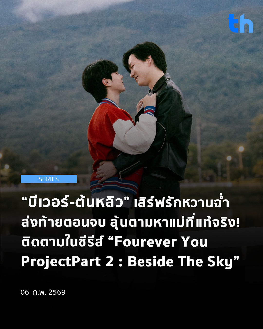 ความรักของ “ต้นฟ้า (บีเวอร์ พรรษพล)” และ “ไต้ฝุ่น (ต้นหลิว เมธาพัฒน์)” ในซีรีส์ “Fourever You Project Part 2 : Beside The Sky” กำลังพัฒนาไปอย่างอบอุ่นและสวยงาม ขณะเดียวกันไต้ฝุ่นยังคงมีความหวังว่าจะได้พบแม่ที่พลัดพรากกันไป โดยได้รับกำลังใจและการสนับสนุนจากเพื่อนๆ รอบตัว รวมถึงต้นฟ้าที่คอยช่วยเหลืออยู่เบื้องหลังอย่างเงียบๆ เพื่อทำให้ความฝันของไต้ฝุ่นเป็นจริง