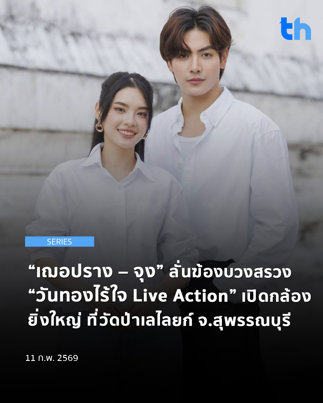 “เฌอปราง – จุง” ลั่นฆ้อง บวงสรวง “วันทองไร้ใจ Live Action” เปิดกล้องยิ่งใหญ่ ที่วัดป่าเลไลยก์ จ.สุพรรณบุรี