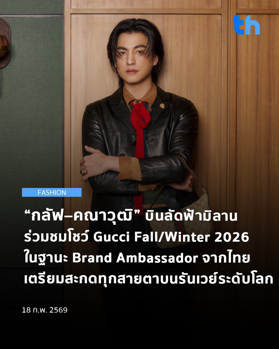 แฟน ๆ สามารถติดตามชมแฟชั่นโชว์คอลเล็คชั่น Fall-Winter 2026 ของ Gucci พร้อมลุคหล่อสะกดทุกสายตาของ “กลัฟ คณาวุฒิ” ได้ทาง Line Official Account ของ Gucci Thailand และ social media ต่าง ๆ ของ Gucci