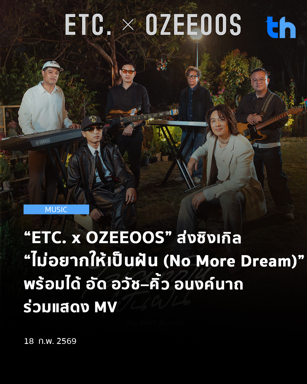 ร่วมติดตามบทสรุปของเรื่องราวได้ที่ YouTube: Move Records และร่วมเดินทางไปกับความคิดถึงในเพลง “ไม่อยากให้เป็นฝัน (No More Dream)” ETC. x OZEEOOS ได้แล้วทุกสตรีมมิ่งแพลตฟอร์ม