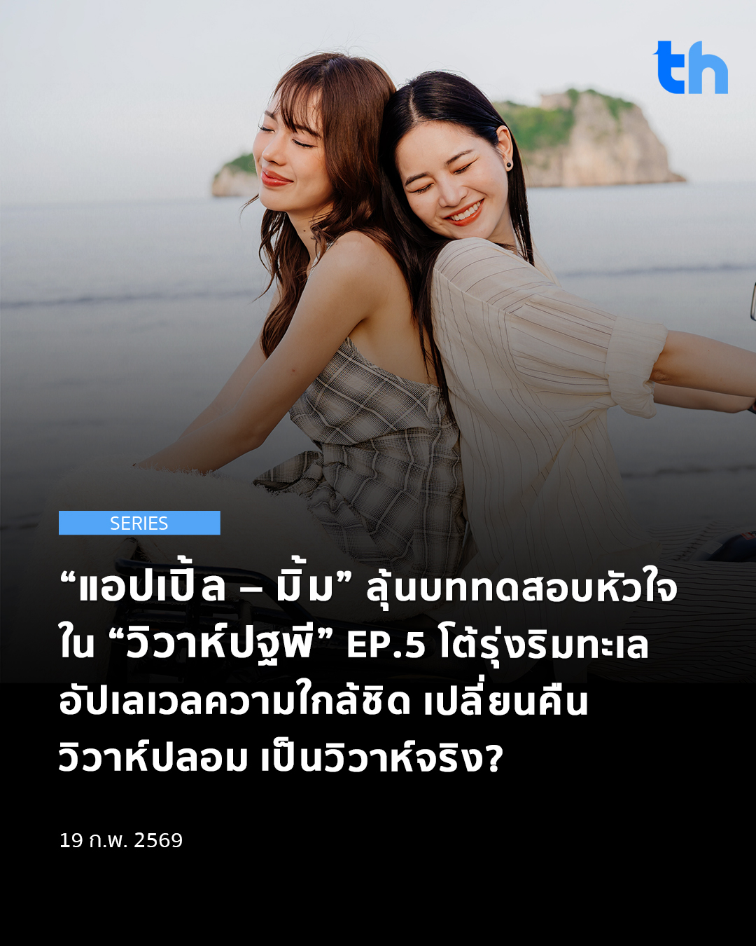 “แอปเปิ้ล – มิ้ม” ลุ้นบททดสอบหัวใจ ใน “วิวาห์ปฐพี” EP.5 โต้รุ่งริมทะเล อัปเลเวลความใกล้ชิด เปลี่ยนคืน วิวาห์ปลอม เป็นวิวาห์จริง?