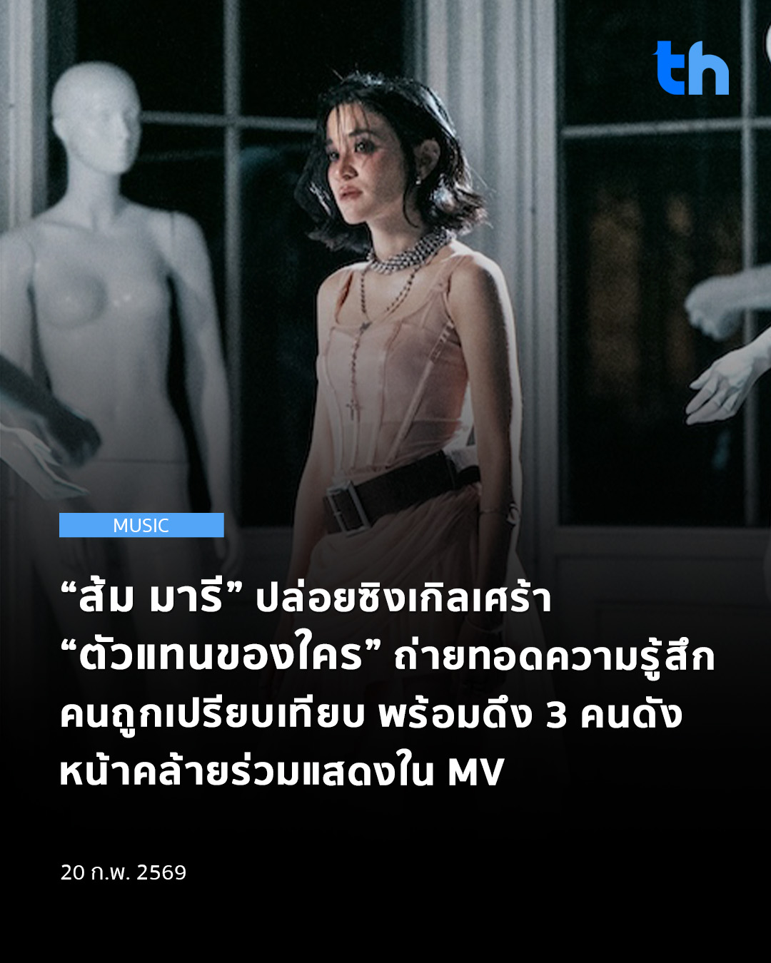 “ส้ม มารี” ปล่อยซิงเกิลเศร้า “ตัวแทนของใคร” ถ่ายทอดความรู้สึก คนถูกเปรียบเทียบ พร้อมดึง 3 คนดัง หน้าคล้ายร่วมแสดงใน MV