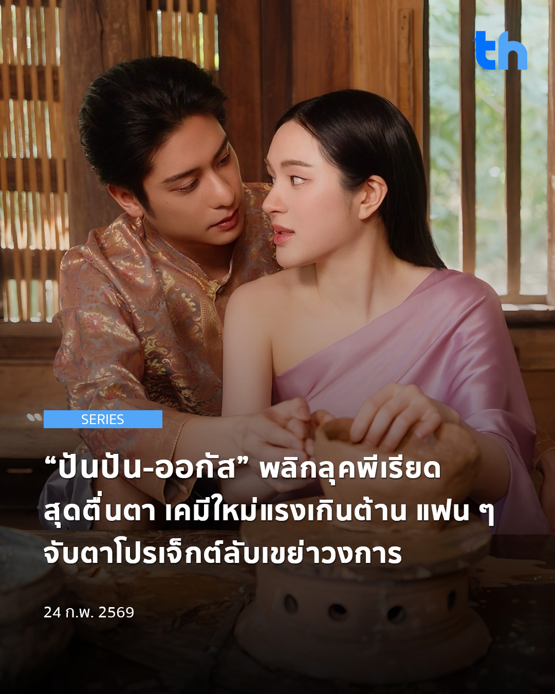 งานนี้สาวปันปันขอสลัดภาพจำเดิม ๆ พลิกลุคห่มสไบในชุดไทยพีเรียดเป็นครั้งแรกในชีวิต งดงาม อ่อนหวาน แต่แฝงพลังสะกดทุกสายตา ขณะที่หนุ่มออกัสก็ไม่น้อยหน้า ลงทุนถอดเสื้อโชว์ซิคแพ็คแน่น ๆ เผยลุคเข้มขรึมสุดละมุน หล่อแรงจนโซเชียลแทบลุกเป็นไฟ