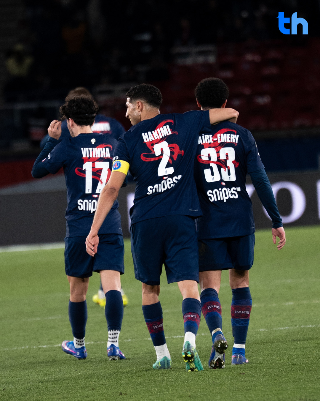 ด้านเสื้อฝึกซ้อม (warm-up jersey) มาในโทนสีขาวสะอาดตา ตัดกับเฉดแดงไล่ระดับอันเป็นซิกเนเจอร์ของ TEAM WANG design ได้แรงบันดาลใจจากศิลปะหมึกจีนและสีน้ำแบบดั้งเดิม ด้านหลังโดดเด่นด้วยลวดลายอักษร “ม้า” (馬) จัดวางอย่างมีจังหวะ สื่อถึงความเร็ว พลัง และการพุ่งทะยานไปข้างหน้า ตามความหมายแห่งปีม้า และยิ่งพิเศษไปกว่านั้น นักเตะ PSG ได้สวมใส่ดีไซน์ดังกล่าวลงสนามจริงในเกมพบกับ FC Metz ในศึก Ligue 1 เมื่อวันที่ 21 กุมภาพันธ์ที่ผ่านมา ณ สนาม Parc des Princes เพิ่มดีกรีความร้อนแรงให้กับทั้งแฟนบอลและแฟนคลับของ Jackson Wang ทั่วโลก