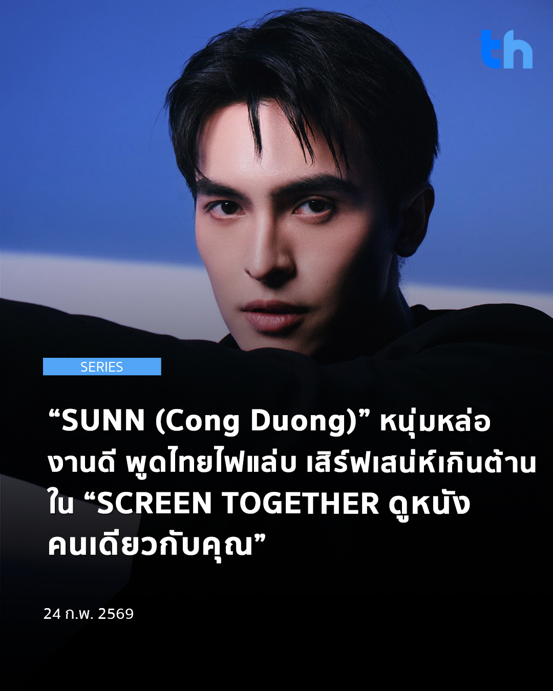 นอกจากพล็อตเรื่องที่สนุกชวนฟิน รวมถึงเคมีของแต่ละคู่แล้ว ความสามารถและเสน่ห์ของนักแสดงก็ถูกพูดถึงไม่น้อย โดยเฉพาะ “SUNN (Cong Duong)” หนุ่มหน้าหล่อพูดไทยชัดแจ๋ว จากซีรีส์เรื่อง “SCREEN TOGETHER ดูหนังคนเดียวกับคุณ” รายนี้ดาเมจแรงมาก !!! ทำเอาหลายคนอินจัดอยากมีโมเมนต์ตกหลุมรักในโรงหนังกับเขาบ้าง แถมยังโดนตกเต็ม ๆ กับเพลงเพราะ ๆ ท้ายซีรีส์ที่เจ้าตัวฝากเสียงร้องไว้กับซิงเกิลที่มีชื่อว่า “Heartbeat Crush Ost. Dee Hup House Special Gifts 2026 (Vertical Series)” หล่องานดี ความสามารถจึ้งเบอร์นี้ ไม่เปิดวาร์ปได้ไง นาทีนี้จะพาไปส่องโปรไฟล์ของหนุ่มคนนี้