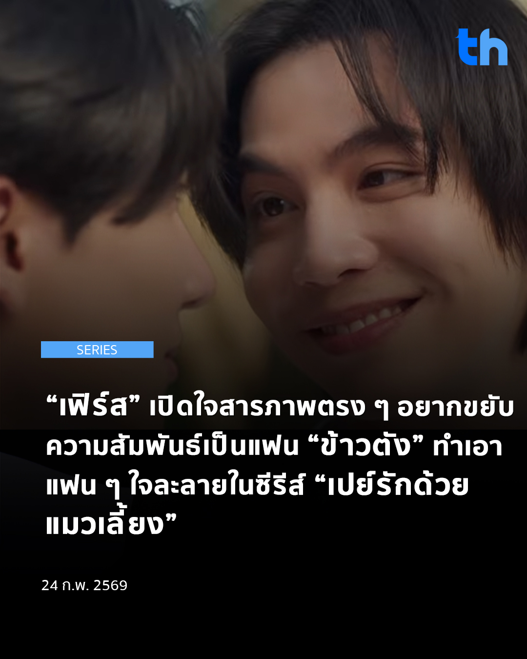 ติดตามได้ในซีรีส์ “เปย์รักด้วยแมวเลี้ยง” วันอังคารที่ 24 กุมภาพันธ์นี้ เวลา 20:30 น. ทางช่อง GMM25 และทางแอปพลิเคชั่น TrueVisions NOW เท่านั้น และพร้อมอัพเดททุกความเคลื่อนไหวได้ทุกช่องทางของ GMMTV