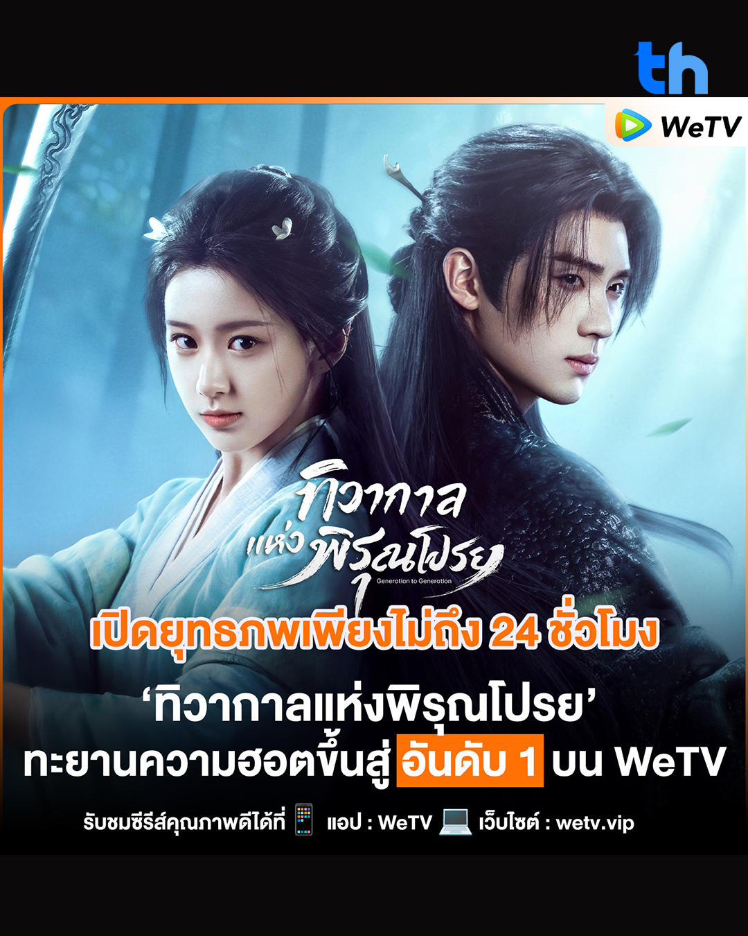 สมศักดิ์ศรีซีรีส์พีเรียดฟอร์มยักษ์ที่แฟน ๆ ทั่วโลกตั้งตารอ สำหรับ “ทิวากาลแห่งพิรุณโปรย (Generation to Generation)” ซีรีส์โรแมนติก-ดราม่าเข้มข้นที่ได้พระเอกหนุ่มหน้าหวาน “โจวอี้หราน” พลิกบทบาทสวมวิญญาณหนุ่มขี้ระแวง โลกส่วนตัวสูงปรี๊ด โคจรมาปะทะเคมีสุดลงตัวกับ “เปาซ่างเอิน”นางเอกสาวแสนสดใส ผู้พกรอยยิ้มมาละลายใจคนดู ถ่ายทอดเรื่องราวได้อย่างตราตรึงสมการรอคอย จนสร้างกระแสตอบรับถล่มทลาย และพาซีรีส์ทะยานขึ้นแท่นอันดับ 1 บนแอป WeTV ภายใน 24 ชั่วโมงแรกอย่างรวดเร็ว