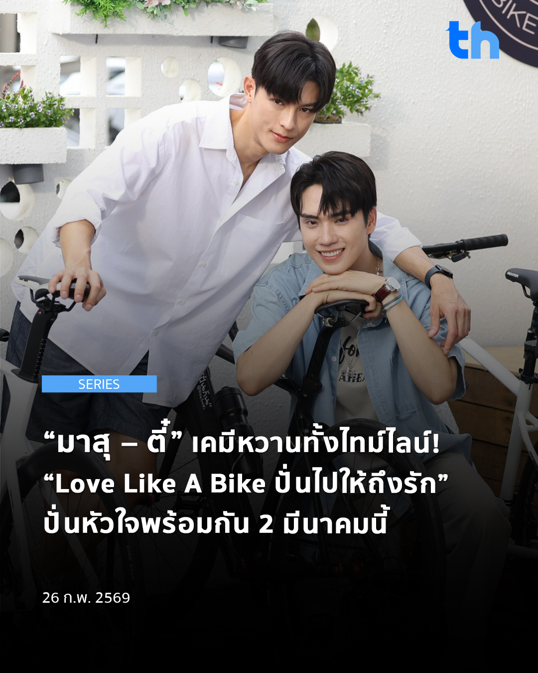 เตรียมโดนยึดหน้าฟีดทั้งประเทศ! สำหรับซีรีส์โรแมนติก–ฟีลกู๊ด “LOVE LIKE A BIKE ปั่นไปให้ถึงรัก” จากค่าย “S CLASS ENTERTAINMENT” ของผู้จัดไฟแรง “เอส–ธรรปพล ขันไชย” พร้อมเสิร์ฟความอบอุ่นลงจอที่ช่อง 3 มาเปิดจักรวาลความรักกับเคมีใหม่ของพระเอก “มาสุ จรรยางค์ดีกุล” รับบท “นับหนึ่ง” จิตแพทย์หนุ่มอบอุ่นระดับพ่อไมโครเวฟ ที่จะมาฮีลใจคนดูทั้งจอ ประกบ “ตี๋ ธนพล จารุจิตรานนท์” รับบท “สายลม” คนไข้คนที่กลัวการสัมผัส แต่กลับแพ้ความอ่อนโยนของคุณหมอแบบไม่ทันตั้งตัว กลายเป็นความสัมพันธ์ที่ค่อย ๆ ใกล้จนเกินระยะปลอดภัย ทำเอาใจสั่น รับรองยิ่งดูยิ่งลุ้นแน่นอน