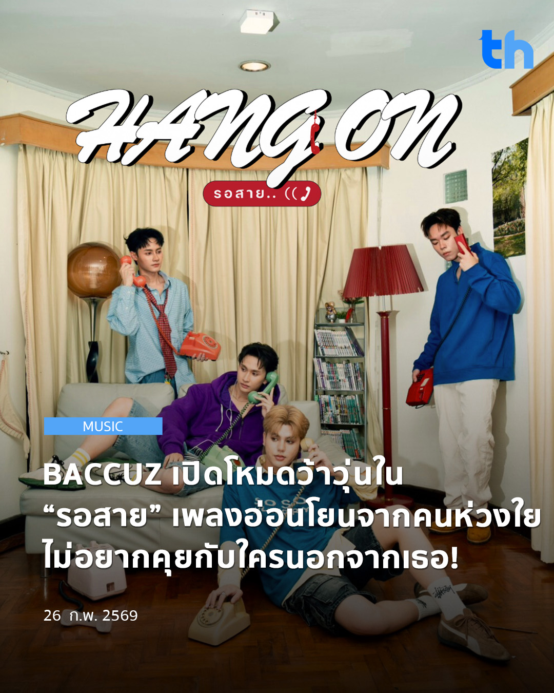 เรื่องราวความห่วงใยแบบฉบับ BACCUZ จะเป็นอย่างไร ติดตามเพลง “รอสาย (Hang On)” ได้ทาง YouTube Vivify Label และทุกช่องทางสตรีมมิ่ง พร้อมติดตามการเติบโตที่น่าติดตามของ BACCUZ ได้ทุกช่องทางของพวกเขา