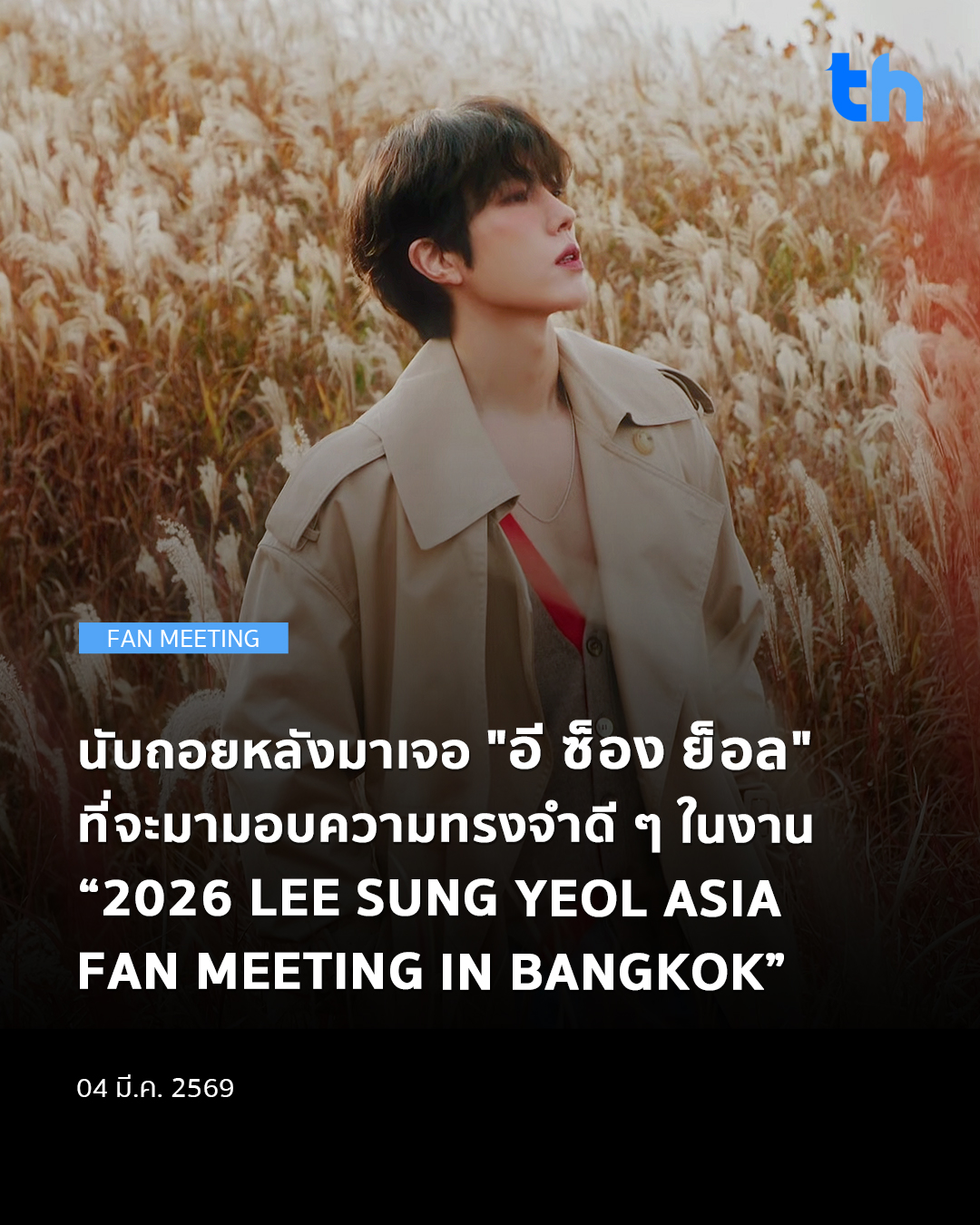 โอกาสดี ๆ แบบนี้หาที่ไหนไม่ได้อีกแล้ว เตรียมตัวมาสร้างความทรงจำสุดพิเศษไปกับ หนุ่ม “อี ซ็อง ย็อล” กันได้ใน “2026 LEE SUNG YEOL ASIA FAN MEETING IN BANGKOK” ในวันเสาร์ที่ 14 มีนาคม 2569 เดอะ สตรีท รัชดา ฮอลล์ เดอะ สตรีท รัชดา ชั้น 5