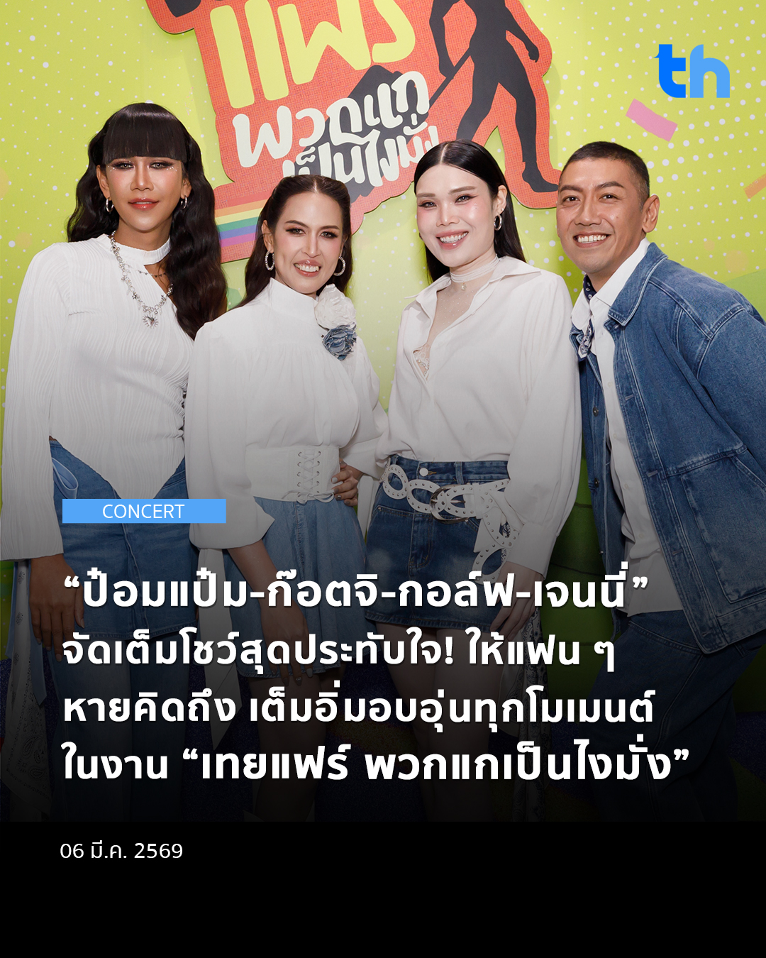 สมการรอคอยกับงานใหญ่ “เทยแฟร์ พวกแกเป็นไงมั่ง” ของ 4 พิธีกรตัวแม่ “ป๋อมแป๋ม นิติ, ก๊อตจิ ทัชชกร, กอล์ฟ กิตติพัทธ์ และ เจนนี่ ปาหนัน” จากรายการ “เทยเที่ยวไทย” ที่สร้างตำนานความสนุกตลอดกว่า 12 ปี มากกว่า 500 อีพี โดยครั้งนี้แฟน ๆ ให้การต้อนรับอย่างอบอุ่น พร้อมโชว์จัดเต็ม แสง สี เสียงสุดอลังการ และสเปเชียลโชว์จากแขกรับเชิญและเหล่าลูก ๆ ที่มาร่วมสร้างเสียงหัวเราะและความประทับใจให้แฟนไทยและอินเตอร์แฟนที่รับชมพร้อมกันทั่วโลกผ่าน Live Streaming ทาง TMM LIVE เมื่อวันที่ 3 มีนาคม 2569 ณ ยูเนี่ยน ฮอลล์ ชั้น F6 ศูนย์การค้ายูเนี่ยน มอลล์