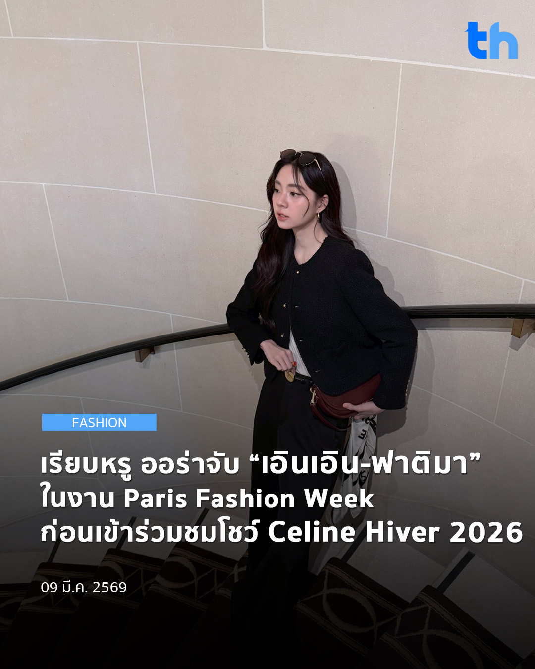 เรียบหรูสะกดทุกสายตา สำหรับ “เอินเอิน ฟาติมา” ที่ปรากฏตัวอย่างโดดเด่นในบรรยากาศของ Paris Fashion Week ก่อนเข้าร่วมชมแฟชั่นโชว์คอลเลกชัน Celine Hiver 2026 ของแบรนด์แฟชั่นระดับโลก Celine ซึ่งจัดขึ้นเมื่อวันที่ 7 มีนาคม 2026 ณ กรุง Paris