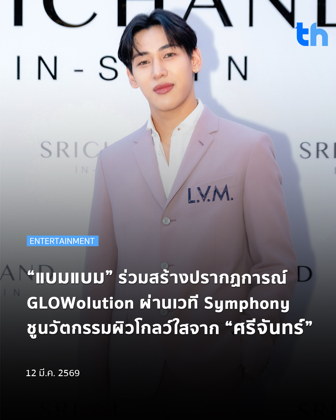 เมื่อวันที่ 10 มีนาคม 2569 “ศรีจันทร์ (SRICHAND)” จัดงาน “The Symphony of GLOWolution” เปิดตัวสกินแคร์ไลน์ใหม่ SRICHAND IN-SKIN Phyto Camellia PDRN Series ถ่ายทอดบทใหม่แห่งผิวโกลว์ใสผ่านงานสุดเอ็กซ์คลูซีฟ ณ Paragon Park ที่ถูกเนรมิตเป็น Outdoor Symphony Hall ใจกลางเมือง โดยมี “แบมแบม–กันต์พิมุกต์ ภูวกุล” พรีเซนเตอร์ SRICHAND IN-SKIN มาร่วมถ่ายทอดผ่านโชว์สุดเอ็กคลูซีพที่ผสานแสง เสียง และศาสตร์แห่งความงาม ท่ามกลางเหล่าเซเลบริตี้ อินฟลูเอนเซอร์ สื่อมวลชน และแฟน ๆ ที่มาร่วมสัมผัสบรรยากาศการเปิดตัว พร้อมสัญลักษณ์ “ดอกคามิลเลีย” ที่สะท้อนแนวคิดนวัตกรรม Vegan PDRN และการก้าวสู่หมุดหมายใหม่ของผิวโกลว์ใสสำหรับคนไทย