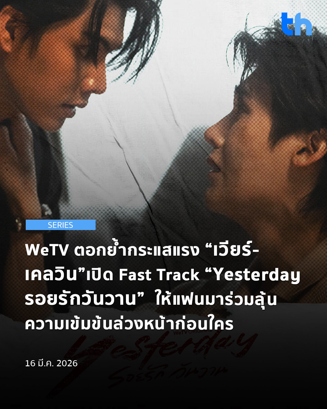 ใกล้เดินทางสู่บทสรุปแล้ว สำหรับซีรีส์วายที่ถูกยกให้เป็น “ซีรีส์ที่เจ็บที่สุดแห่งปี” WeTV Original “Yesterday รอยรักวันวาน” ผลงานการแสดงเข้มข้นของสองนักแสดงมากฝีมือ “ฟอร์ด ฐิติพงศ์” และ “พีท วสุธร” ที่ถ่ายทอดเรื่องราวความรักและความสัมพันธ์สุดซับซ้อนของ “เวียร์” และ “เคลวิน” ได้อย่างตรึงอารมณ์ จนพาซีรีส์ขึ้นแท่นซีรีส์วายมาแรงอันดับ 1 บนแอป WeTV