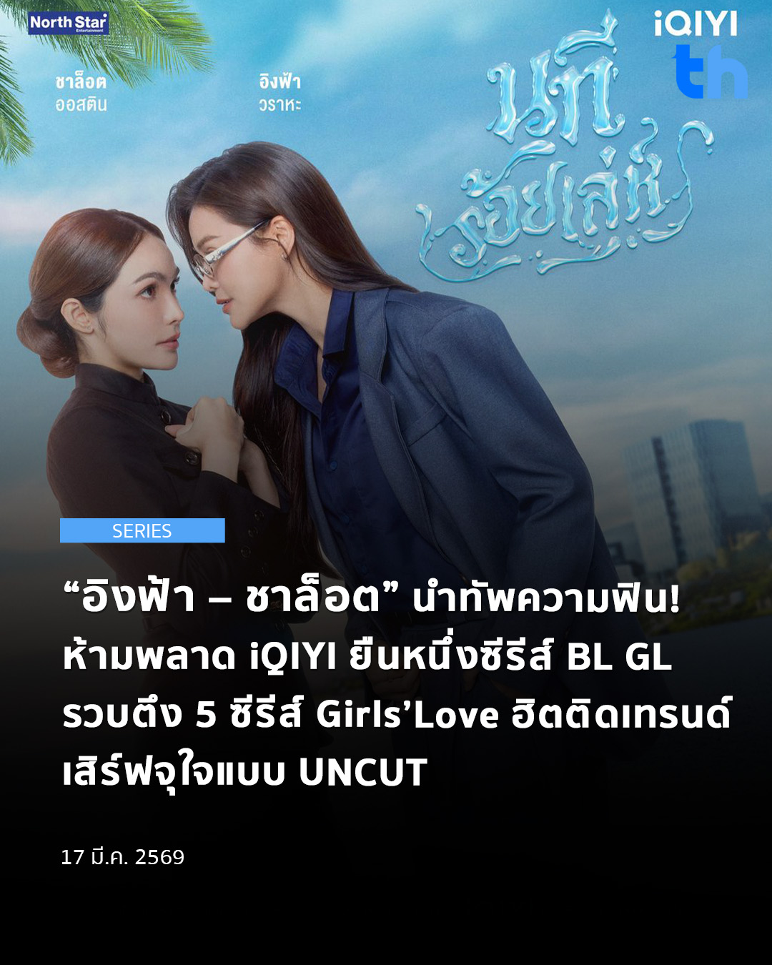 iQIYI ผู้นำแพลตฟอร์มวิดีโอออนไลน์และบ้านของความบันเทิงยอดนิยมแห่งเอเชีย กลับมาสร้างกระแสซีรีส์ Girls’ Love (GL) อีกครั้ง พร้อมขนทัพซีรีส์หลากหลายแนวมาให้แฟน ๆ ได้รับชมในเวอร์ชัน UNCUT กันอย่างจุใจ