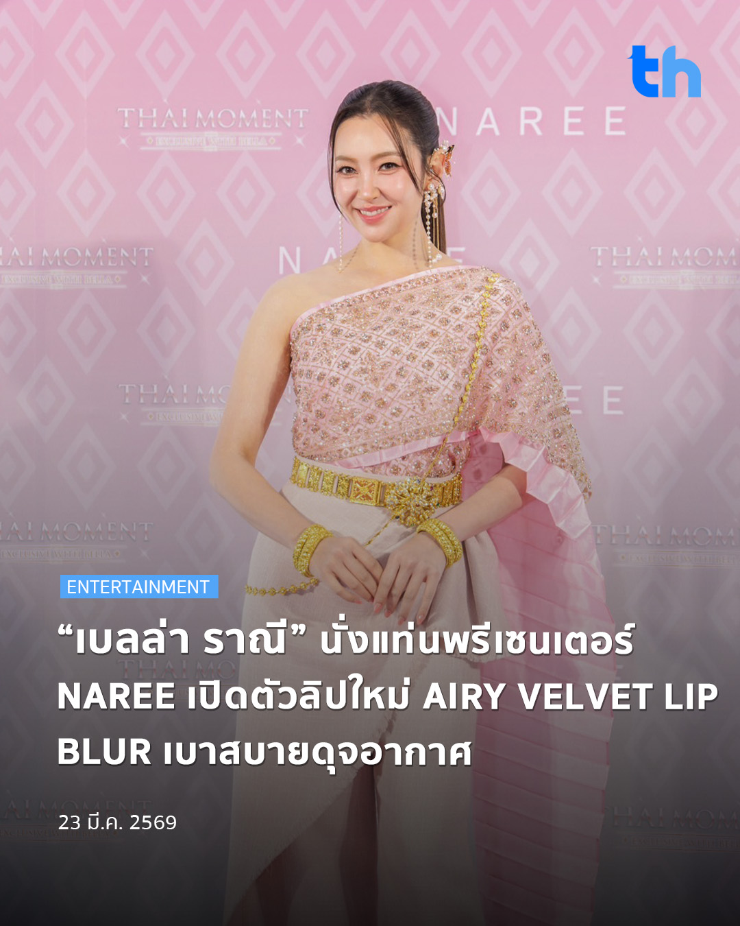 ห้างแตก! เมื่อนางเอกขวัญใจมหาชน “เบลล่า ราณี” ปรากฏตัวลุคสวยสะกดสายตา ในงาน “NAREE X WATSONS THAI MOMENT EXCLUSIVE WITH BELLA” ในฐานะพรีเซนเตอร์คนแรกของ NAREE (นารี) แบรนด์เครื่องสำอางไทยที่กำลังมาแรงและโดดเด่นเป็นอันดับหนึ่งในกลุ่ม Color Cosmetic ภายใต้คอนเซ็ปต์อบอุ่นละมุนใจ “นารีพาสวยละไม ใจละลายกับราณี” พร้อมเผยโฉมลิปสติกตัวดังของแบรนด์ NAREE AIRY VELVET LIP BLUR ที่อัปเกรดสู่เจเนอเรชันที่ 3 มีถึง 18 เฉดสี ตอบโจทย์ทุกอันเดอร์โทนผิว