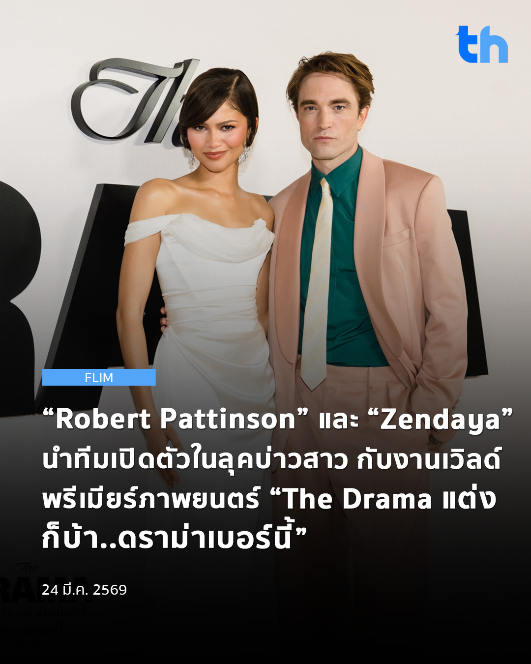 Home»NEWS»“Robert Pattinson” และ “Zendaya” นำทีมเปิดตัวในลุคบ่าวสาว กับงานเวิลด์ พรีเมียร์ภาพยนตร์ “The Drama แต่ง ก็บ้า..ดราม่าเบอร์นี้”