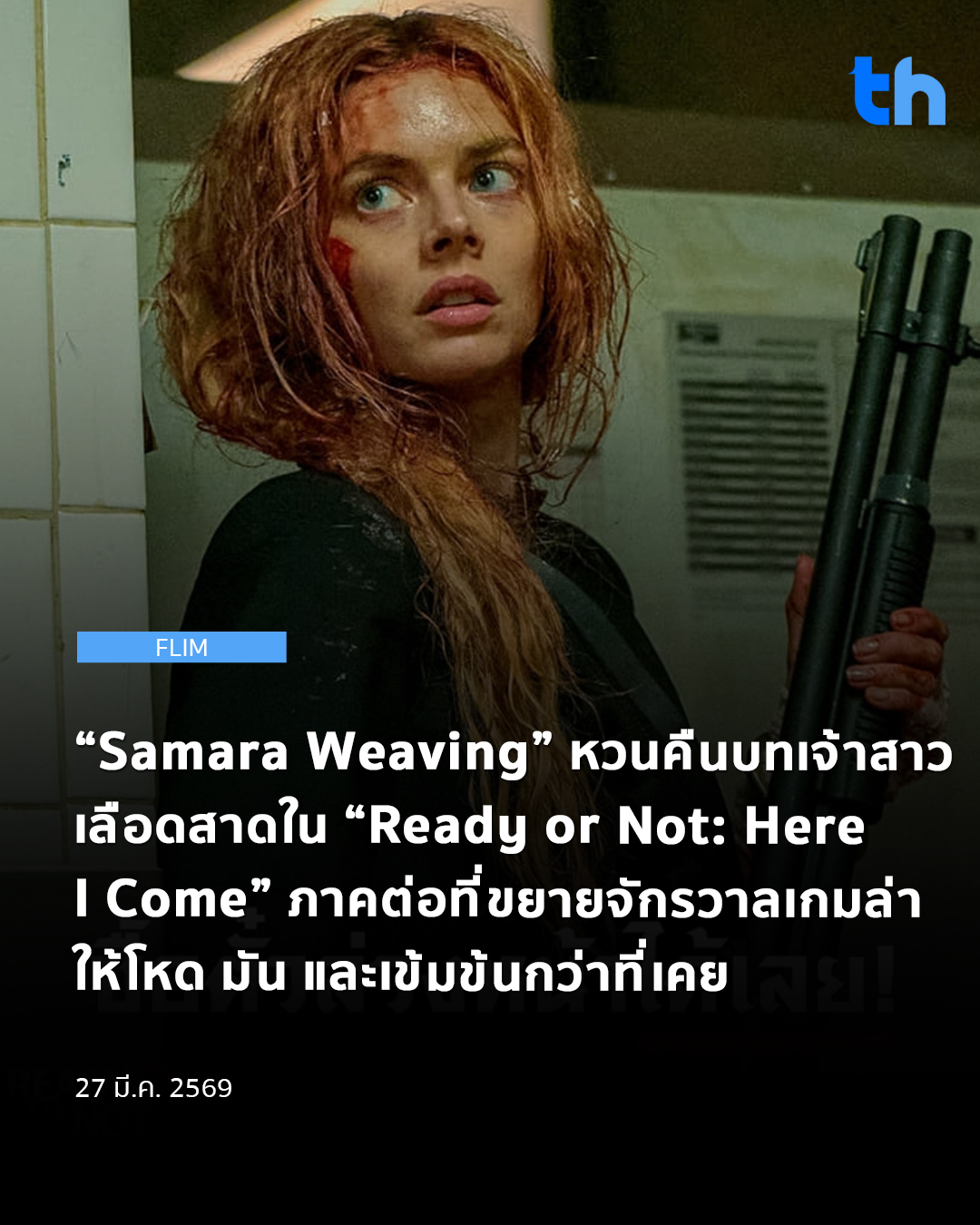 หลังจากทิ้งภาพจำสุดสะพรึงไว้ใน “Ready or Not” (2019) “Samara Weaving” ก็กลับมาสวมชุดเจ้าสาวโชกเลือดอีกครั้งในบท “Grace” ผู้รอดชีวิตจากเกมสุดเดือด พร้อมพาแฟน ๆ ก้าวสู่เกมลุ้นตายครั้งใหม่ที่เข้มข้นกว่าเดิมใน “Ready or Not: Here I Come เกมพร้อมตาย 2” ภาพยนตร์ดาร์คคอเมดี้ที่ทั้งลุ้นระทึกและฮาไปพร้อมกัน