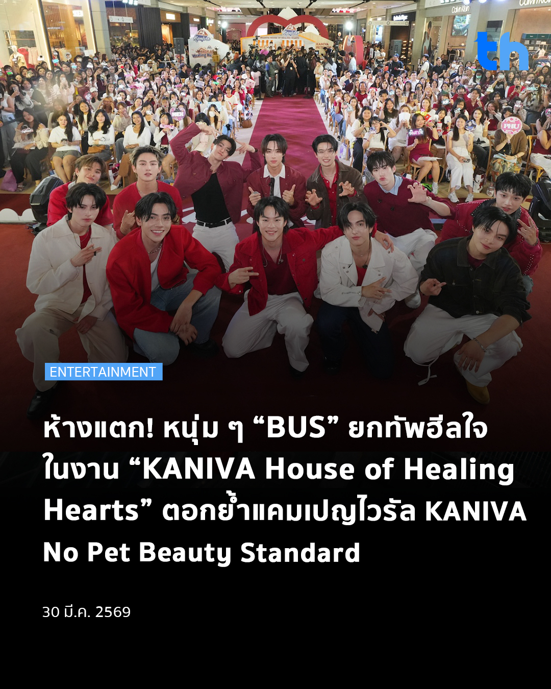 เซ็นทรัลเวิลด์เกือบแตก! เมื่อ “KANIVA” (คานิว่า) ผู้นำธุรกิจอาหารแมวและสุนัข นำ 12 หนุ่มวง “BUS because of you i shine” พรีเซนเตอร์สุดฮอตของแบรนด์ บุกลาน Eden ที่เนรมิตให้เป็นพื้นที่แห่งความรักที่ไร้ขีดจำกัด งานนี้ไม่ได้มีแค่ความหล่อของศิลปิน แต่ยังพกเอาพลังงานบวกมาฮีลใจเหล่า Pet Parent ในงาน “KANIVA House of Healing Hearts” เมื่อวันที่ 24 มีนาคม 2569 ท่ามกลางบรรยากาศสุดอบอุ่นที่ชวนให้ทุกคนภูมิใจในความน่ารักของน้องแมวน้องหมาในแบบที่เขาเป็น