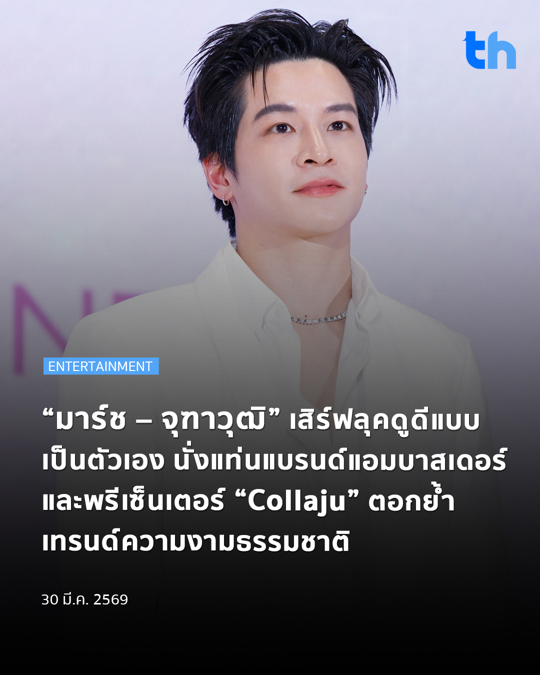 มาร์ช – จุฑาวุฒิ กล่าวว่า  “ช่วงนี้ผมทำงานค่อนข้างหนัก เลยให้ความสำคัญกับการดูแลตัวเองมากขึ้น ผมมองหาวิธีที่ช่วยให้ดูสดชื่นขึ้น แต่ยังต้องเป็นธรรมชาติ และยังเป็นตัวเราอยู่ สำหรับผม ความดูดีที่ยั่งยืน คือความพอดี และทำให้เรามั่นใจในแบบของตัวเอง ซึ่งตรงกับแนวคิดของ Collaju ครับ”