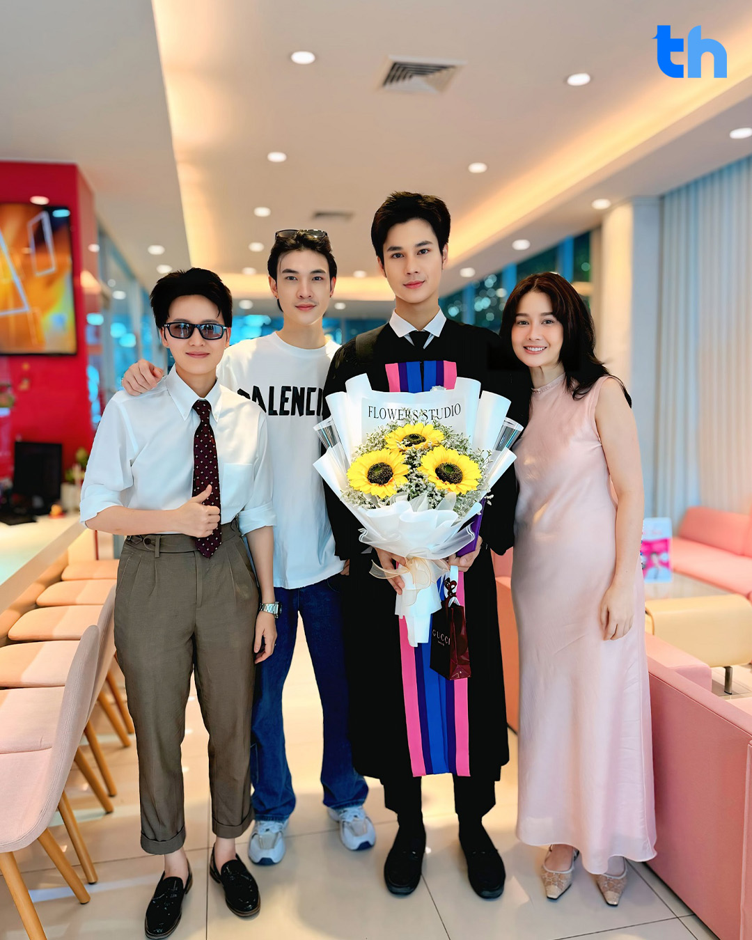 บรรยากาศเป็นไปอย่างอบอุ่น โดยมีกำลังใจสำคัญร่วมแสดงความยินดีมากมาย อาทิ คุณพ่อ คุณแม่ และญาติ ๆ ครอบครัว “บรรณทอง” รวมถึงผู้จัดซีรีส์คนเก่ง “โม-อมีนา และ “หญิง-มนัสณันท์” ผู้จัดสายสะดือการแสดงในวงการบันเทิง นอกจากนี้ยังมีเพื่อน ๆ ในวงการ แฟนคลับ และพาร์ทเนอร์พี่ชายสุดซี้อย่าง “ชาย-สมชาย” ก็ไม่พลาดหอบดอกไม้มาร่วมแสดงความยินดีกับเจ้าซันน้องชายคนสนิทอีกด้วย
