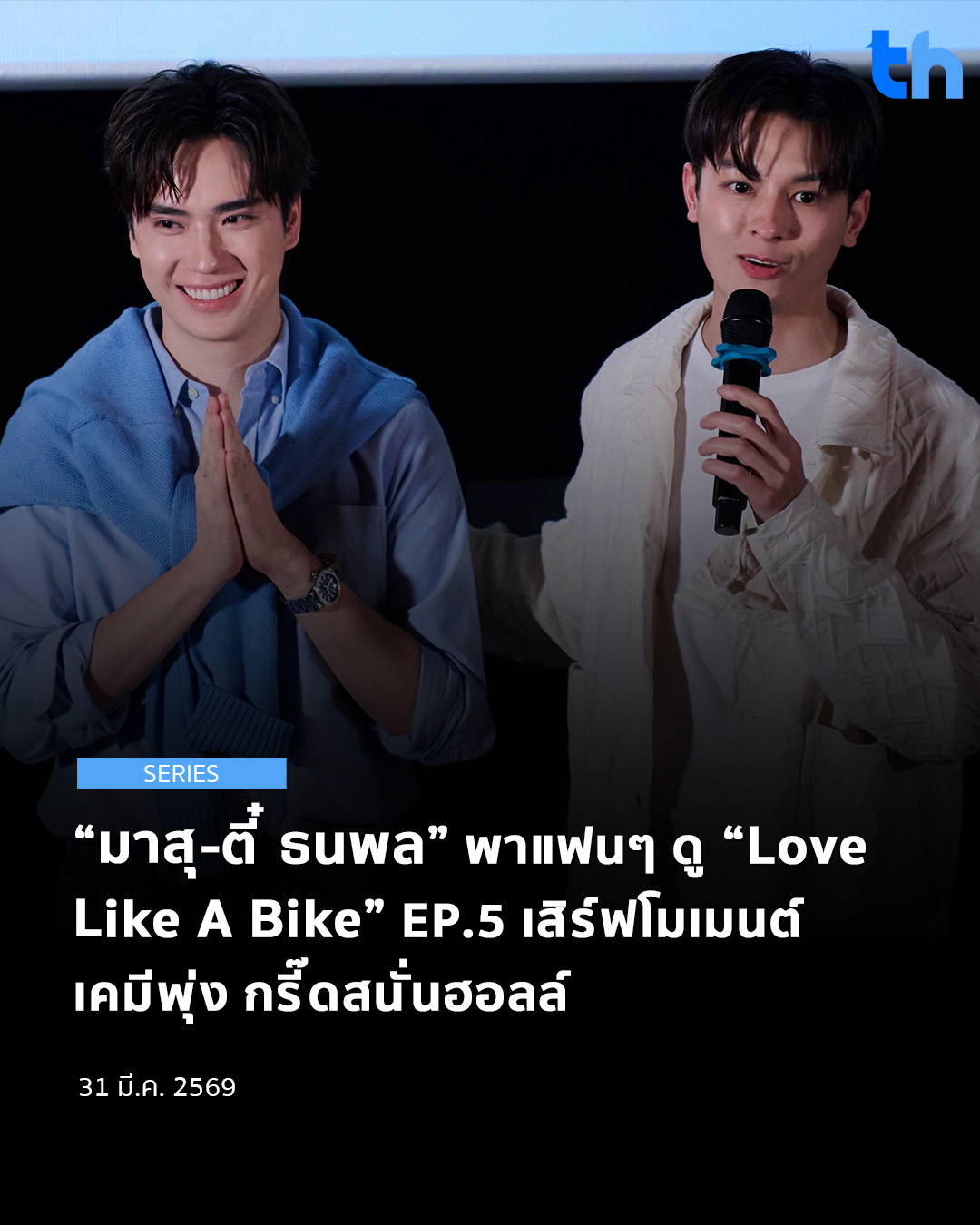 เดินทางเข้าสู่ช่วงเร่งเครื่องของเรื่องราวแบบฉุดไม่อยู่ สำหรับซีรีส์วายฟีลกู๊ด “Love Like A Bike ปั่นไปให้ถึงรัก” ที่ล่าสุดจัดกิจกรรมพิเศษชวนแฟนคลับร่วมชม EP.5 ไปพร้อมทีมนักแสดง ณ เมเจอร์ ซีนีเพล็กซ์ สุขุมวิท ท่ามกลางความคึกคักตั้งแต่ยังไม่เริ่มงาน แฟนๆ ทยอยเดินทางมาแน่นพื้นที่ พร้อมเก็บทุกโมเมนต์ใกล้ชิด เสียงทักทายและเรียกชื่อดังต่อเนื่อง สร้างความอบอุ่นตั้งแต่ก้าวแรก