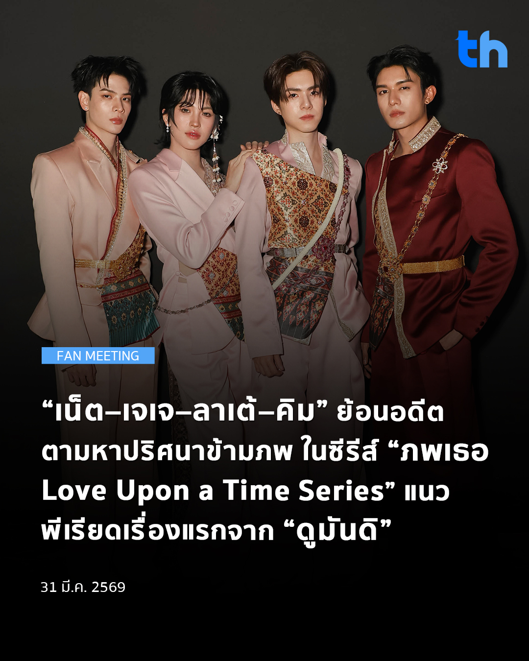 ด้านทีมนักแสดงนำอย่าง ‘เน็ต – เจเจ – ลาเต้ – คิม’ เผยความรู้สึกว่า “ซีรีส์เรื่องนี้เป็นเรื่องที่พวกเรารอคอย อยากให้ทุกคนได้ชมกันมาก ๆ เลยครับ สนุกแน่นอนและ ยังได้เห็นพวกเราในการเล่นซีรีส์พีเรียดที่เปลี่ยนคาแรคเตอร์พวกเราไปอีกแบบ รวมถึงการปรับตัวในเรื่องภาษาที่ใช้ในการสื่อสาร ทำให้ช่วงการถ่ายทำรู้สึกท้าทายมาก นอกจากนี้ยังได้เรียนรู้อะไรใหม่ ๆ หลายอย่าง ฝากซีรีส์เรื่องนี้ให้ทุกคนได้ติดตามด้วยนะครับ พวกเราตั้งใจกันมาก ๆ เลยครับ”