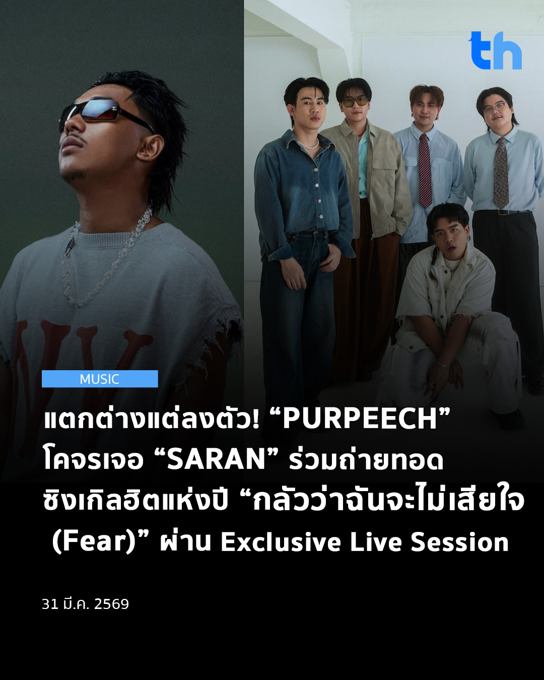 หลังจากสร้างปรากฏการณ์สนั่นวงการเพลงด้วยการคว้า 3 รางวัลใหญ่จากเวที TOTY MUSIC AWARDS – Shining Forwards Thai Music 2025 มาได้แบบสด ๆ ร้อน ๆ สำหรับซิงเกิลฮิตติดชาร์ตอันดับ 1 อย่าง “กลัวว่าฉันจะไม่เสียใจ (Fear)” ของ PURPEECH วงดนตรีมากคุณภาพจาก MILK! BKK Music Label ภายใต้สังกัด What The Duck ที่ยังคงตอกย้ำความสำเร็จอย่างต่อเนื่อง ด้วยผลงานที่โดดเด่นทั้งในด้านเนื้อหาและซาวด์ดนตรี จนกลายเป็นอีกหนึ่งเพลงแห่งปีที่ครองใจผู้ฟังทั่วประเทศ
