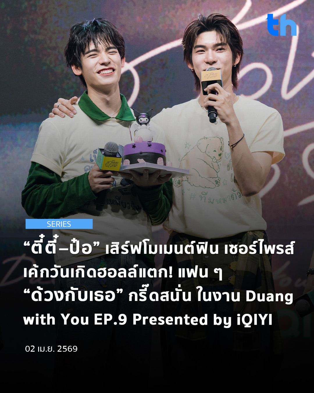 อีกหนึ่งไฮไลต์พิเศษที่สร้างความตื่นเต้นกันทั้งฮอลล์ คือโมเมนต์สุดเซอร์ไพรส์ เมื่อ “ป๋อ” ยกเค้กวันเกิดขึ้นเวทีมามอบให้ “ตี๋ตี๋” ล่วงหน้า เพื่อร่วมฉลองวันเกิดอายุครบ 21 ปี ท่ามกลางเสียงกรี๊ด ในบรรยากาศสุดอบอุ่น นับเป็นอีกหนึ่งความประทับใจที่แฟน ๆ จะไม่มีวันลืม หลังจบงาน แฟน ๆ ต่างชื่นชมในความใส่ใจของ iQIYI ในการสร้างสรรค์กิจกรรมคุณภาพ ที่มอบทั้งความสุข ความสนุก ความใกล้ชิด และโมเมนต์สุดพิเศษให้กับผู้ชมได้อย่างครบถ้วน