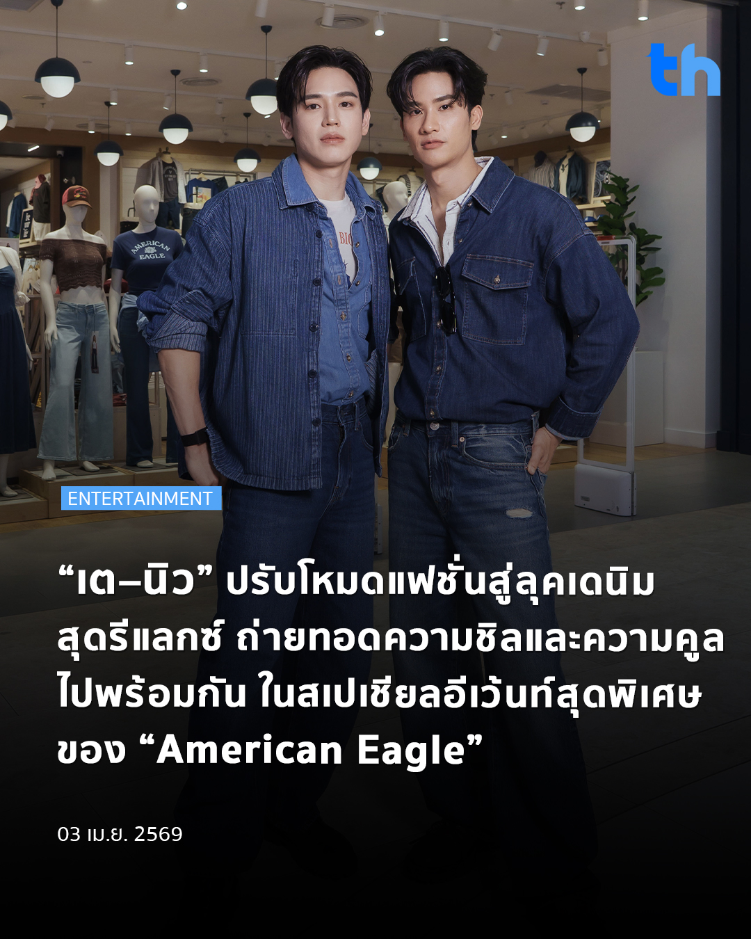 “เต–นิว” ปรับโหมดแฟชั่นสู่ลุคเดนิมสุดรีแลกซ์ ถ่ายทอดความชิลและความคูลไปพร้อมกัน ในสเปเชียลอีเว้นท์สุดพิเศษของ “American Eagle”