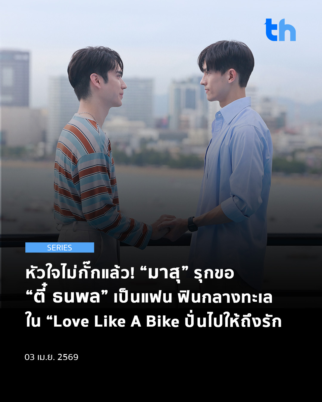 ตามลุ้นต่อได้ใน “Love Like A Bike ปั่นไปให้ถึงรัก” ในคืนวันจันทร์ที่ 6 เมษายน 2569 เวลา 22.30 น. ทางช่อง 3 กด 33 รับชมออนไลน์ทาง 3Plus และรับชมย้อนหลัง UNCUT ได้ที่ Netflix เวลา 23.30 น.