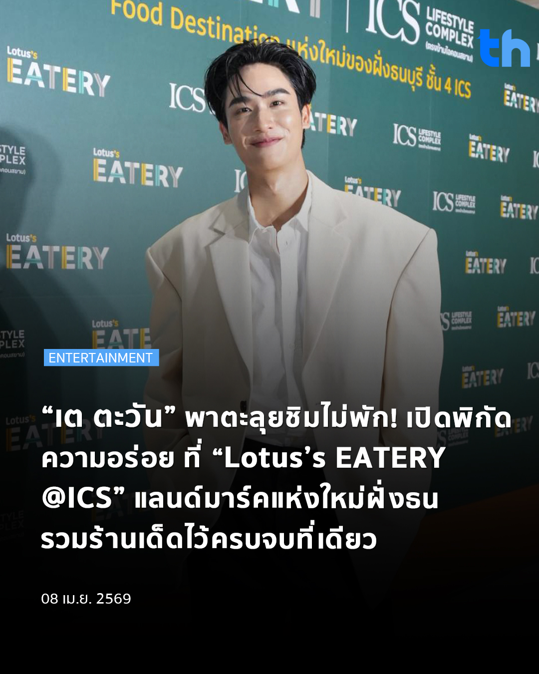 ปักหมุด Food Destination ความอร่อยแห่งใหม่ในย่านฝั่งธนฯ เมื่อ ไอซีเอส (ICS) ไลฟ์สไตล์ คอมเพล็กซ์ จับมือ บริษัท ซีพี แอ็กซ์ตร้า จํากัด (มหาชน) เนรมิตสวรรค์ของนักกิน เปิดตัวรวมร้านอร่อยระดับตำนาน Lotus’s EATERY @ICS แห่งแรกและใหญ่ที่สุดในฝั่งธนบุรี บนชั้น 4 ไอซีเอส ยกขบวนร้านเด็ดระดับตำนานและร้านดังบนโซเชียลมาเสิร์ฟความอร่อยกว่า 30 ร้าน โดยจัดงานเปิดตัวอย่างยิ่งใหญ่ วันที่ 7 เมษายน 2569 ชวน “เต – ตะวัน วิหครัตน์” มาทัวร์ชิมเมนูดังแบบเอ็กซ์คลูซีฟอีกด้วย