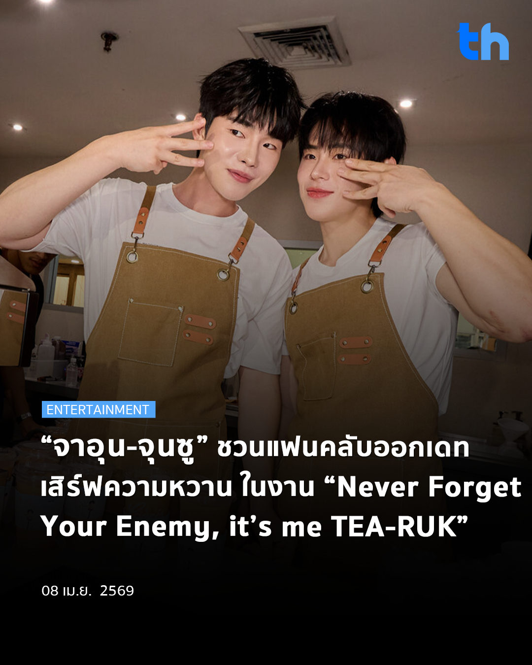 เรียกได้ว่าทั้งอินและฟินเกินต้าน เมื่อ WeTV แพลตฟอร์มวิดีโอสตรีมมิงที่รวมสุดยอดความบันเทิงคุณภาพแห่งเอเชีย ปิดคาเฟ่เนรมิตบรรยากาศสุดเอ็กซ์คลูซีฟ พา “จาอุน-จุนซู” สองนักแสดงสุดฮอตจากซีรีส์ WeTV Original “Never Forget Your Enemy ยังไง..ก็ใช่นาย” มาร่วมสร้างโมเมนต์สุดใกล้ชิดกับแฟนคลับ ในงาน “Never Forget Your Enemy, it’s me TEA-RUK” โดยจัดขึ้นเมื่อวันเสาร์ที่ 4 เมษายน 2569 ที่ผ่านมา ณ LOVEiS Cafe at Lido Connect
