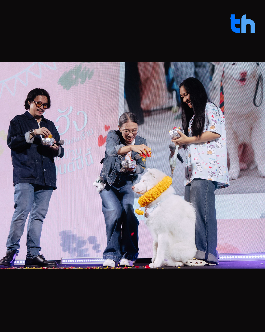 จากนั้นเข้าสู่ช่วงเวลาสุดซาบซึ้ง เมื่อเหล่าผู้กำกับ โปรดิวเซอร์ และนักแสดง คล้องมาลัยและโปรยดอกไม้อวยพรให้เจ้าหมาทั้งสี่ มีสุขภาพที่แข็งแรง และมีความสุขกับบ้านที่แท้จริงของพวกเขา  ต่อด้วยพ่อแม่ของเจ้าหมาทั้งสี่ลงมือแต้มแป้งดินสอพองที่หน้าผากลูก ๆ เพื่อให้พร พร้อมส่งต่อความรักและความปรารถนาดีให้กับน้อง ๆ ท่ามกลางรอยยิ้มที่อบอวลไปทั้งงาน ปิดท้ายโมเมนต์ความประทับใจ ที่สะท้อนถึงคำว่า “บ้าน” ที่ไม่ได้จำกัดอยู่แค่ในจอภาพยนตร์  แต่ยังคงเติบโตและเดินทางต่อไปในชีวิตจริง
