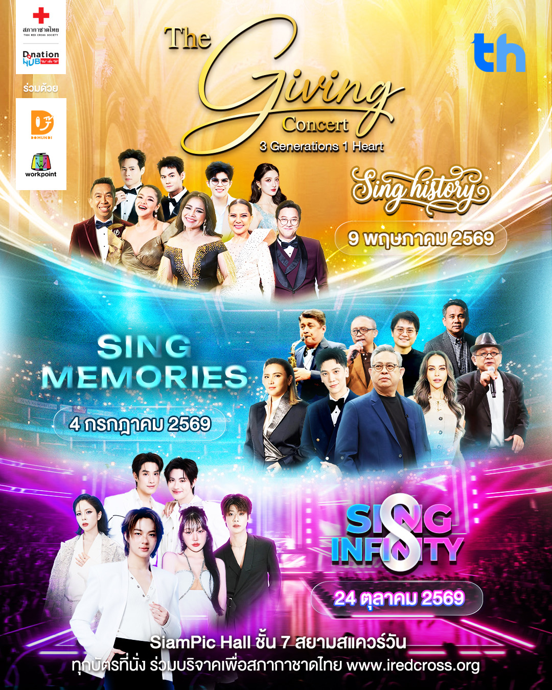 สภากาชาดไทย โดย Thai Red Cross Society ร่วมกับ Workpoint Entertainment และ Donation HUB เปิดตัว “The Giving Concert” 3 Generations • 1 HEART