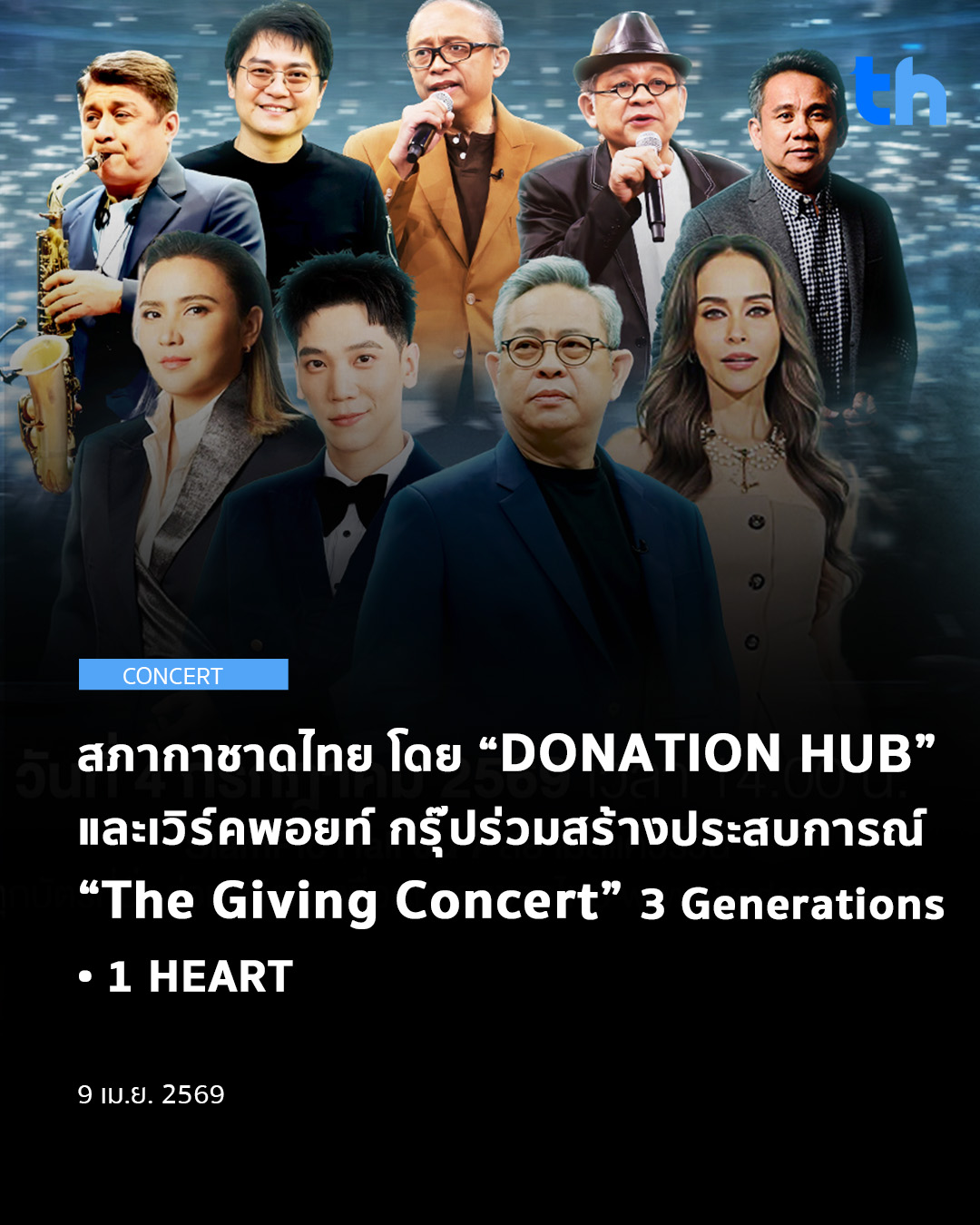 สภากาชาดไทย โดย Thai Red Cross Society ร่วมกับ Workpoint Entertainment และ Donation HUB เปิดตัว “The Giving Concert” 3 Generations • 1 HEART ซีรีส์คอนเสิร์ตการกุศลรูปแบบใหม่ ที่นำพลังของเสียงดนตรีมาเชื่อมโยงผู้คนต่างช่วงวัยเข้าด้วยกัน ถ่ายทอดความสุข ความทรงจำ และแรงบันดาลใจผ่านบทเพลงที่หลากหลาย เพื่อสร้างประสบการณ์แห่งการให้ที่เข้าถึงหัวใจของทุกคน