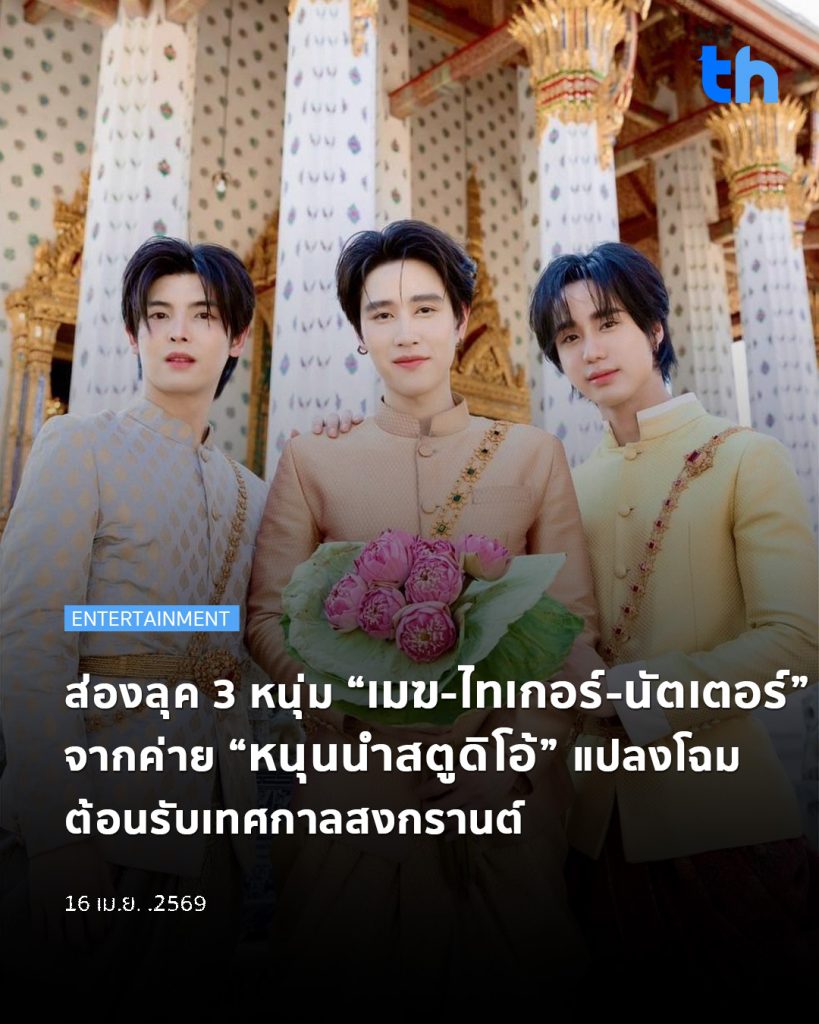 เห็นภาพหล่อๆ ของ 3 หนุ่ม “เมฆ-ไทเกอร์-นัตเตอร์” ใน IG ค่ายหนุนนำสตูดิโอ้ (nunnamstudio) โดยผู้จัดฯ ป้ายแดง “ดี้-ปัทมา ปานทอง” จัดเสิร์ฟความหล่อของลูกๆ ตอกย้ำและสืบสานความสวยงามของชุดไทยอย่างต่อเนื่อง เพื่อต้อนรับเทศกาลสงกรานต์ประเพณีปีใหม่ไทย