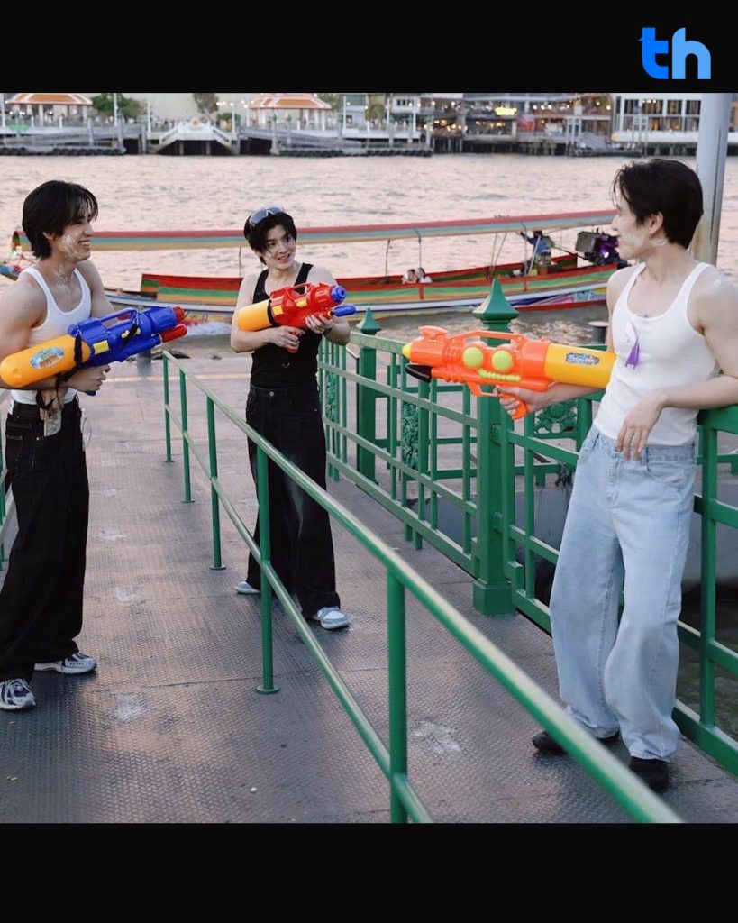3 หนุ่มสร้างสีสันกลางงานสงกรานต์ บางคนมาขอถ่ายรูป ท่ามกลางบรรยากาศคึกคัก หลังจากนั้น ทั้งสามคนยังเพิ่มดีกรีความฮอต ด้วยการเปลี่ยนลุคใหม่เป็นเสื้อลายดอกและเสื้อกล้าม ออร่าสะดุดตา พร้อมถือปืนฉีดน้ำออกตระเวนมอบความสนุกสนาน ส่งต่อ “ความสุข” ให้กับผู้คนที่ร่วมเฉลิมฉลองเทศกาลสงกรานต์ในปีนี้อย่างเต็มอิ่ม
