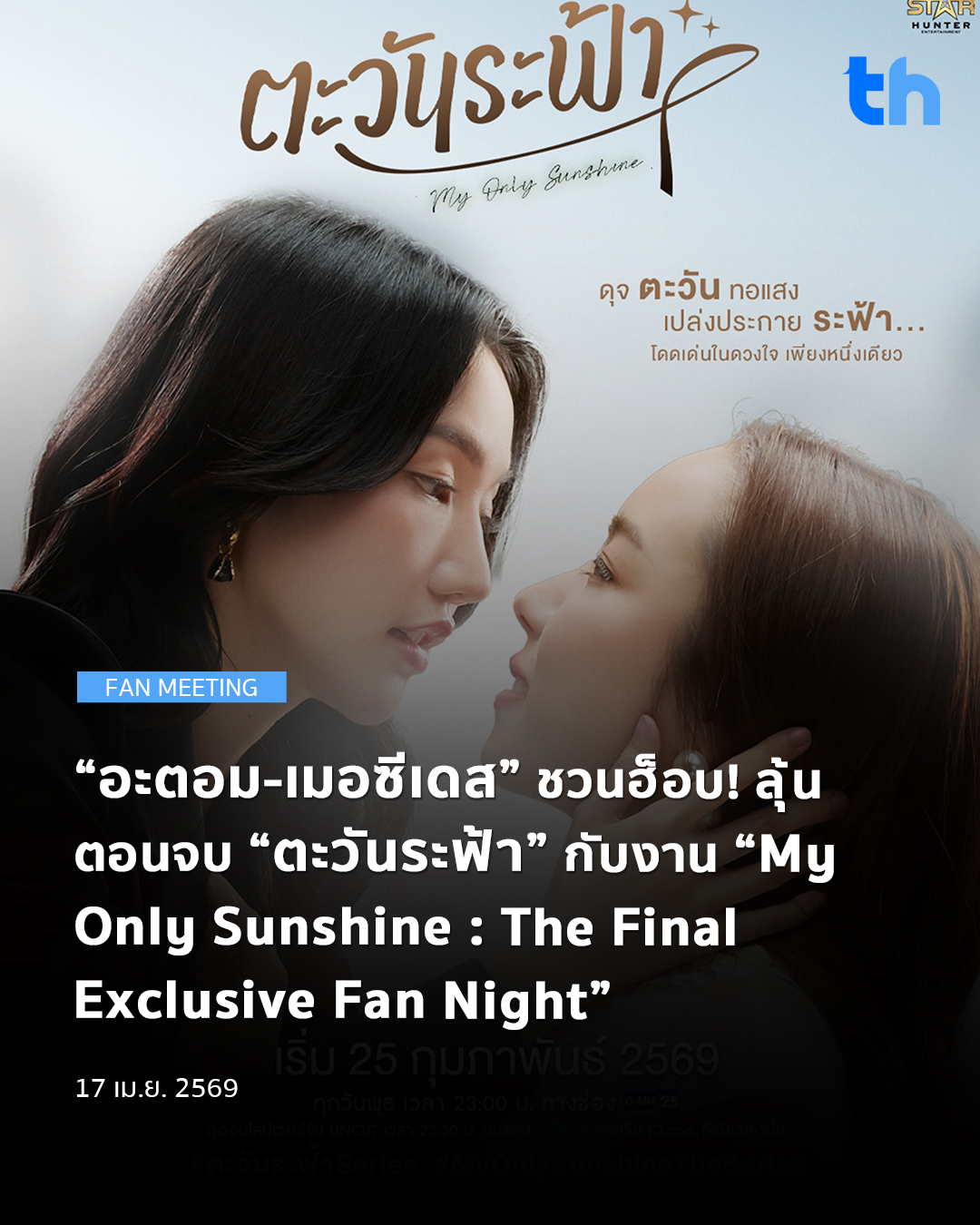 แรงไม่หยุดฉุดไม่อยู่! สำหรับ ซีรีส์แซฟฟิกโรแมนติกคอมเมดี้ดราม่า “ตะวันระฟ้า” (My Only Sunshine The Series) ที่สร้างปรากฏการณ์ติดเทรนด์ X ทุกสัปดาห์ ล่าสุดค่าย Star Hunter Entertainment ชวนแฟน ๆ ร่วมงาน “My Only Sunshine : The Final Exclusive Fan Night” ดึง “อะตอม อภิชญา กำเนิดศิริกุล” และ “เมอซีเดส สิรภัทร สาระคุณ” มาสบตาแบบใกล้ชิด ส่งท้ายความรักสุดอบอุ่น