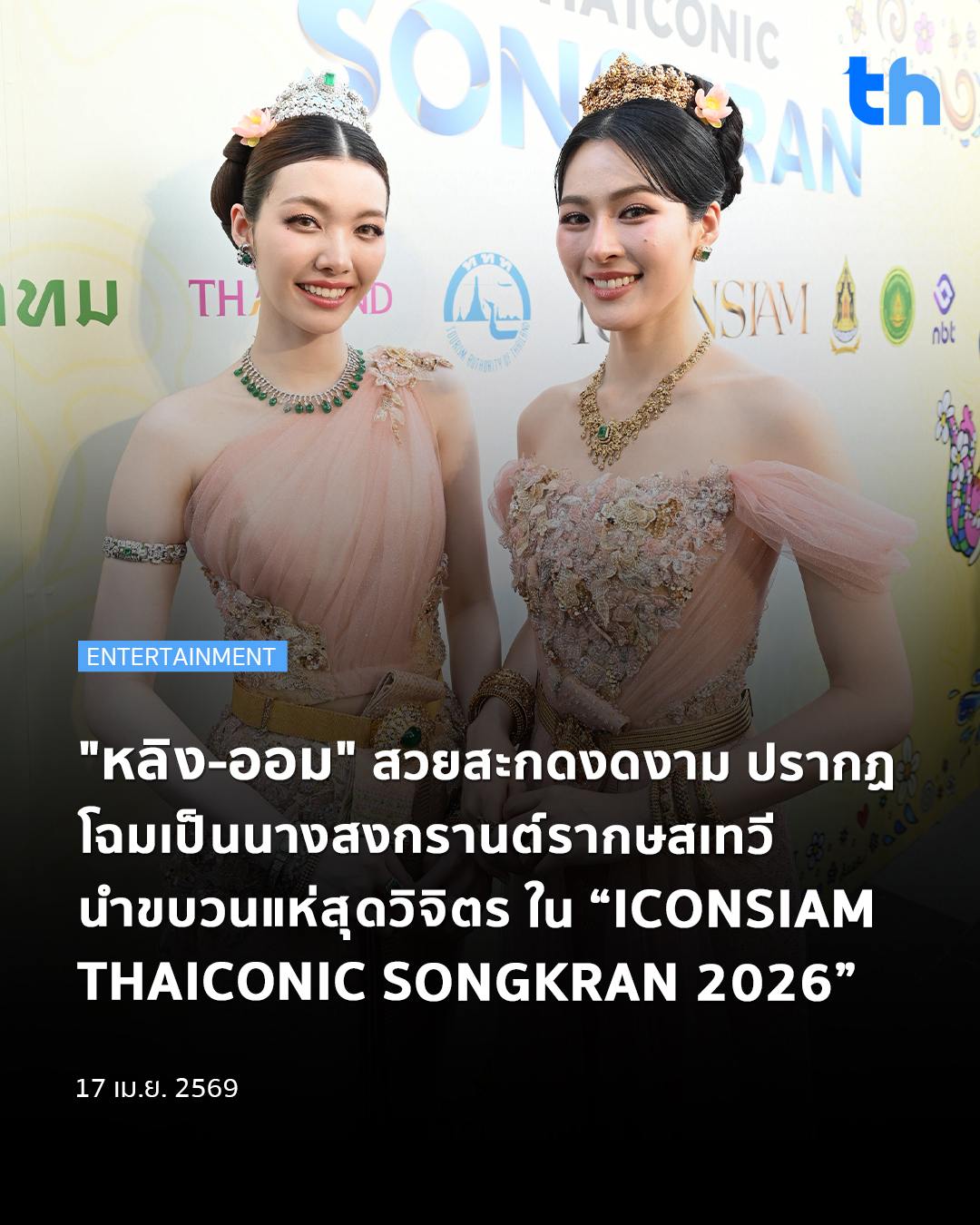ไอคอนสยาม แลนด์มาร์กระดับโลกริมแม่น้ำเจ้าพระยา สาดความสุขระดับปรากฏการณ์ในงาน “ICONSIAM THAICONIC SONGKRAN 2026 : สาด สนุก สุข สิริมงคล สงกรานต์ไทย” พร้อมสร้างตำนานบทใหม่ ครั้งแรกของคู่หวานไอคอนแห่งยุค “หลิงหลิง คอง” และ “ออม กรณ์นภัส” สวมบทเป็นนางสงกรานต์ งดงามในชุดไทยประยุกต์พร้อมเครื่องประดับเพชร-ทองโบราณ งามสง่า ทรงพลัง นำขบวนแห่สุดวิจิตรตระการตา ถ่ายทอดเสน่ห์ของวัฒนธรรมประเพณีไทยสู่สายตาผู้คนจากทั่วโลก