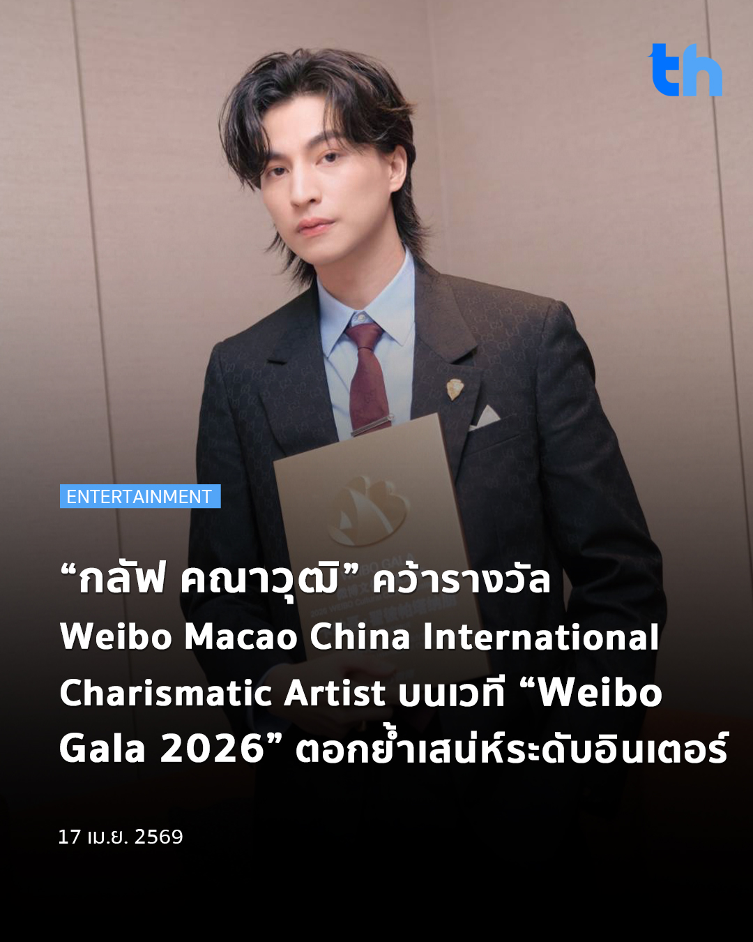 Home»NEWS»“กลัฟ คณาวุฒิ” คว้ารางวัล Weibo Macao China International Charismatic Artist บนเวที “Weibo Gala 2026” ตอกย้ำเสน่ห์ระดับอินเตอร์