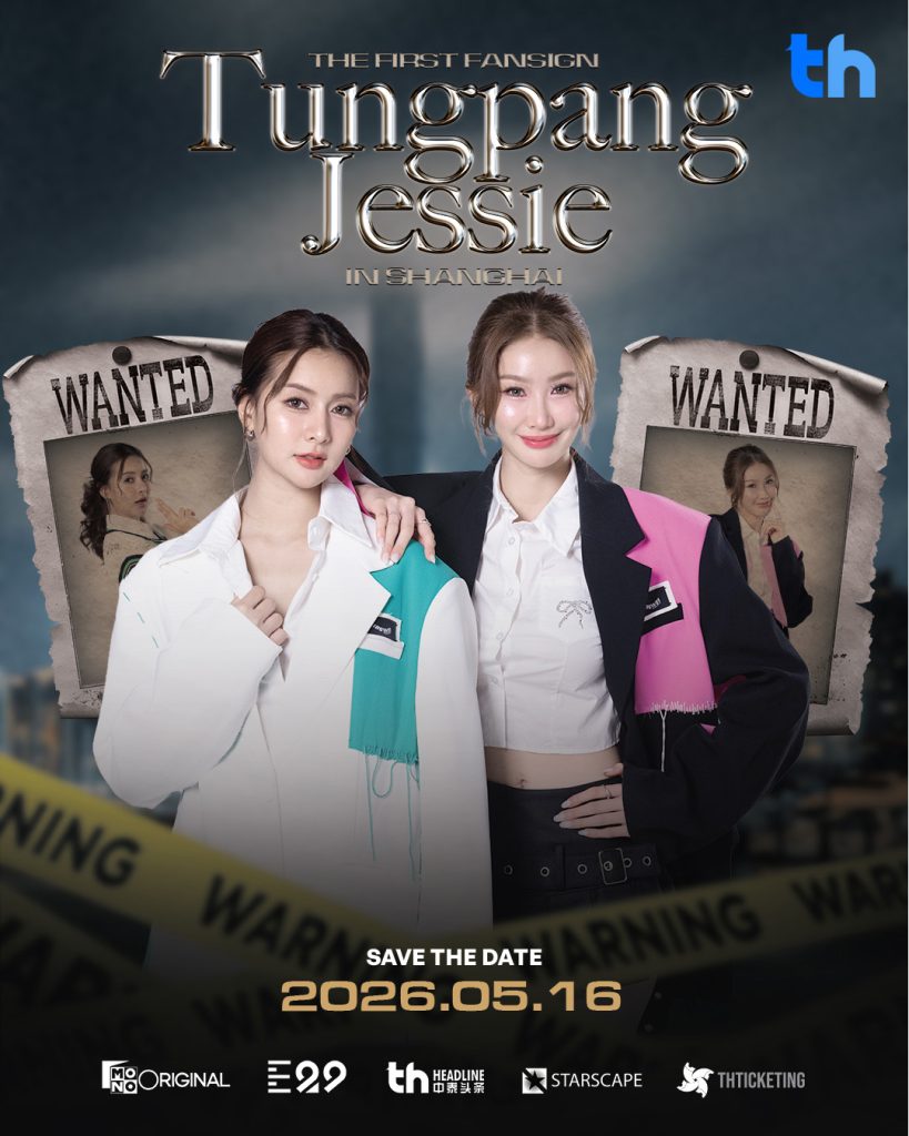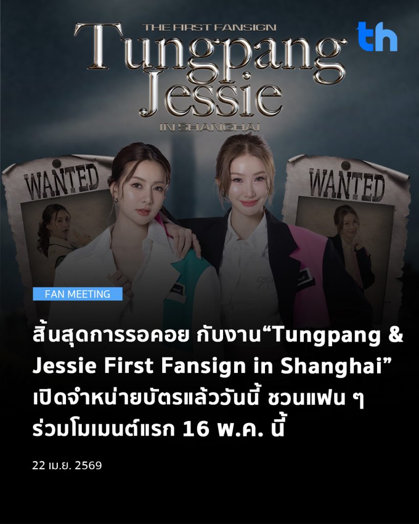เปิดประสบการณ์ครั้งแรก! กับงานแฟนไซน์สุดเอ็กซ์คลูซีฟของ “ถุงแป้ง” และ “เจสซี่” ที่เตรียมมอบความทรงจำสุดพิเศษให้แฟน ๆ แบบจัดเต็ม ในงาน “Tungpang & Jessie First Fansign in Shanghai” จัดขึ้นในวันที่ 16 พฤษภาคม 2026 ณ เซี่ยงไฮ้
