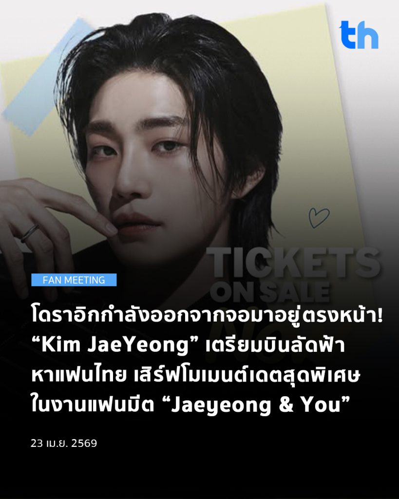 แฟนๆ เตรียมใจสั่นให้ดี เพราะ “Kim JaeYeong” เจ้าของบท “โดราอิก” จากซีรีส์ IDOL I กำลังบินตรงสู่กรุงเทพฯ เพื่อเสิร์ฟโมเมนต์สุดฟินแบบเอ็กซ์คลูซีฟในงาน “2026 KIM JAEYEONG Fanmeeting in BANGKOK <Jaeyeong & You>”