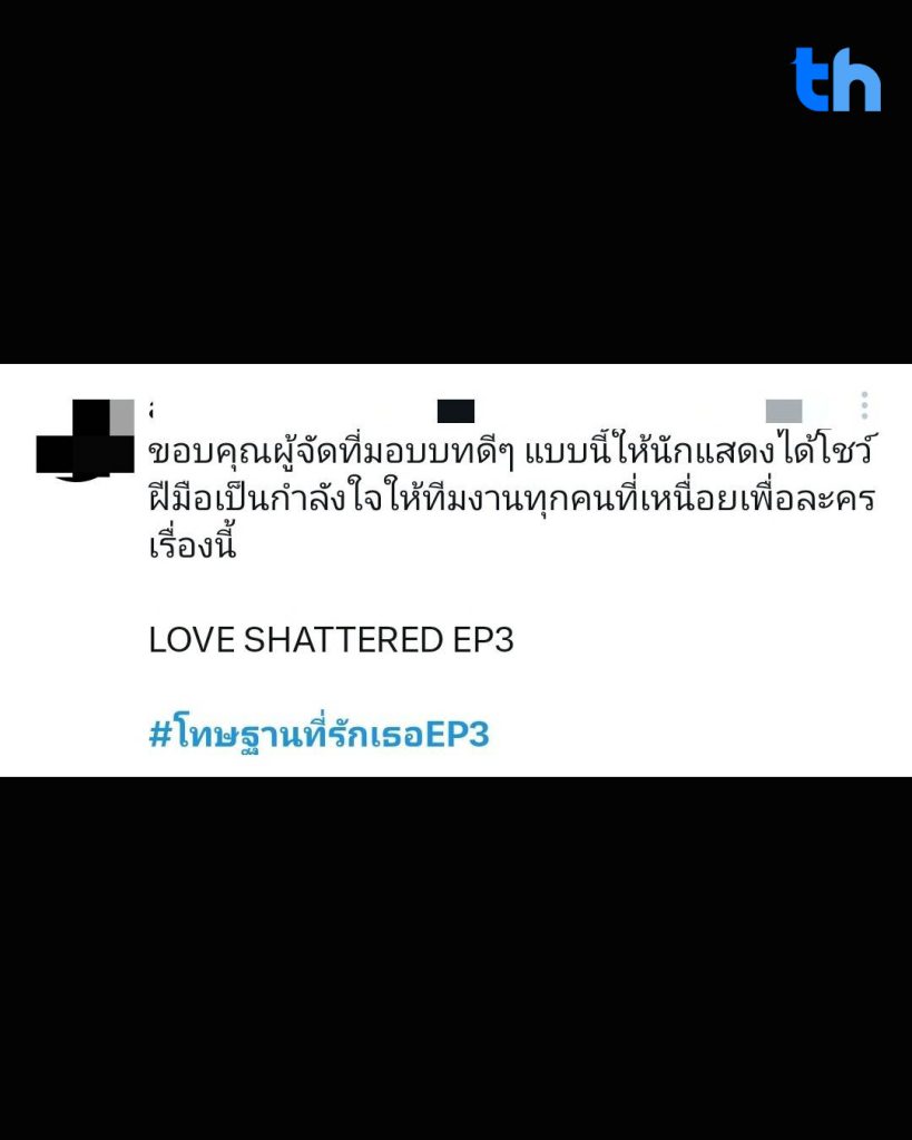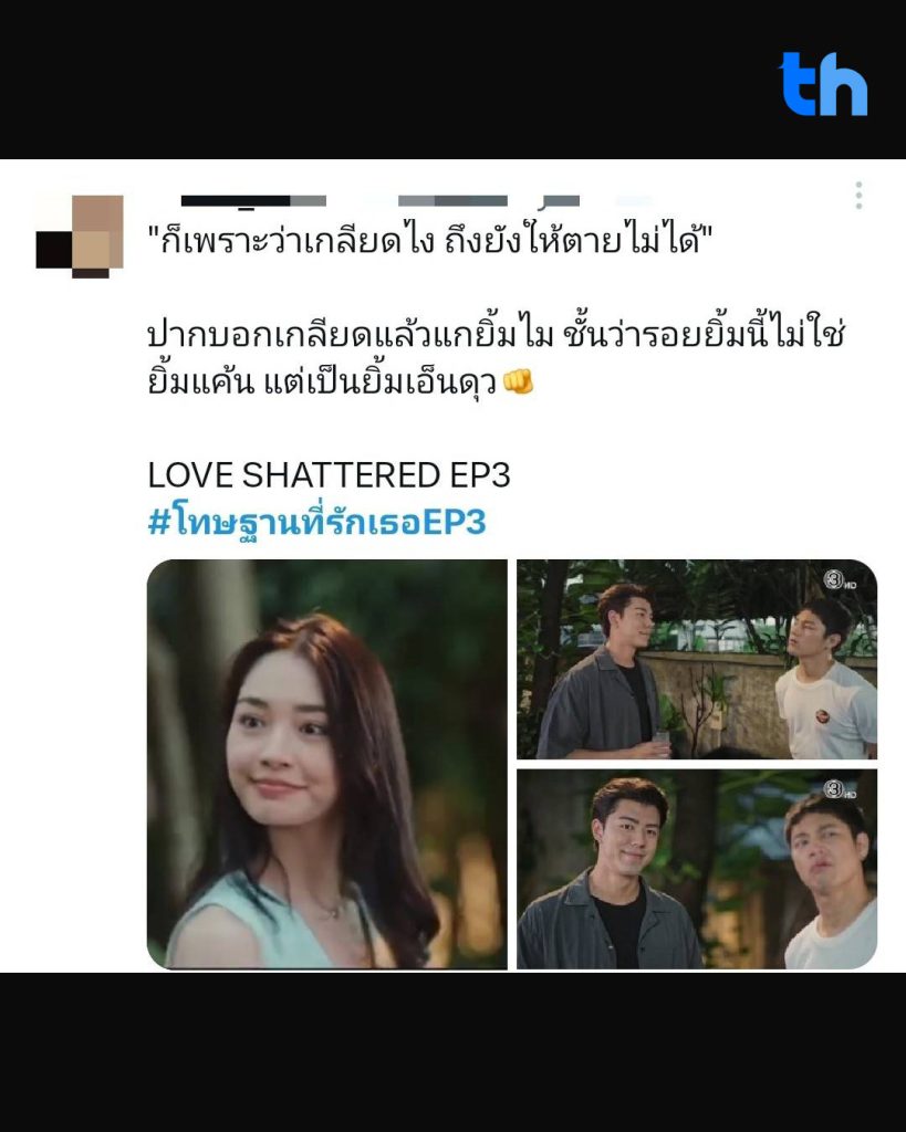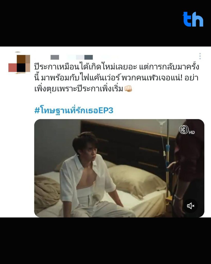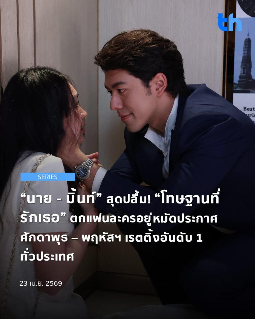 ความแรงไม่หยุดแค่บนโลกออนไลน์ แต่ยังสะท้อนผ่านตัวเลขเรตติ้งที่พุ่งสูง โดย #โทษฐานที่รักเธอEP3 ทำเรตติ้งนิวไฮ กลุ่มผู้ชม 15 ปีขึ้นไป (15 BU+) อยู่ที่ 2.56 กลุ่มกรุงเทพฯ 3.0 และเรตติ้งทั่วประเทศ 2.35 พร้อมครองอันดับ 1 ช่วงเวลา Prime Time ได้อย่างสวยงาม ตอกย้ำความปังของละครที่กำลังมาแรงที่สุดในตอนนี้