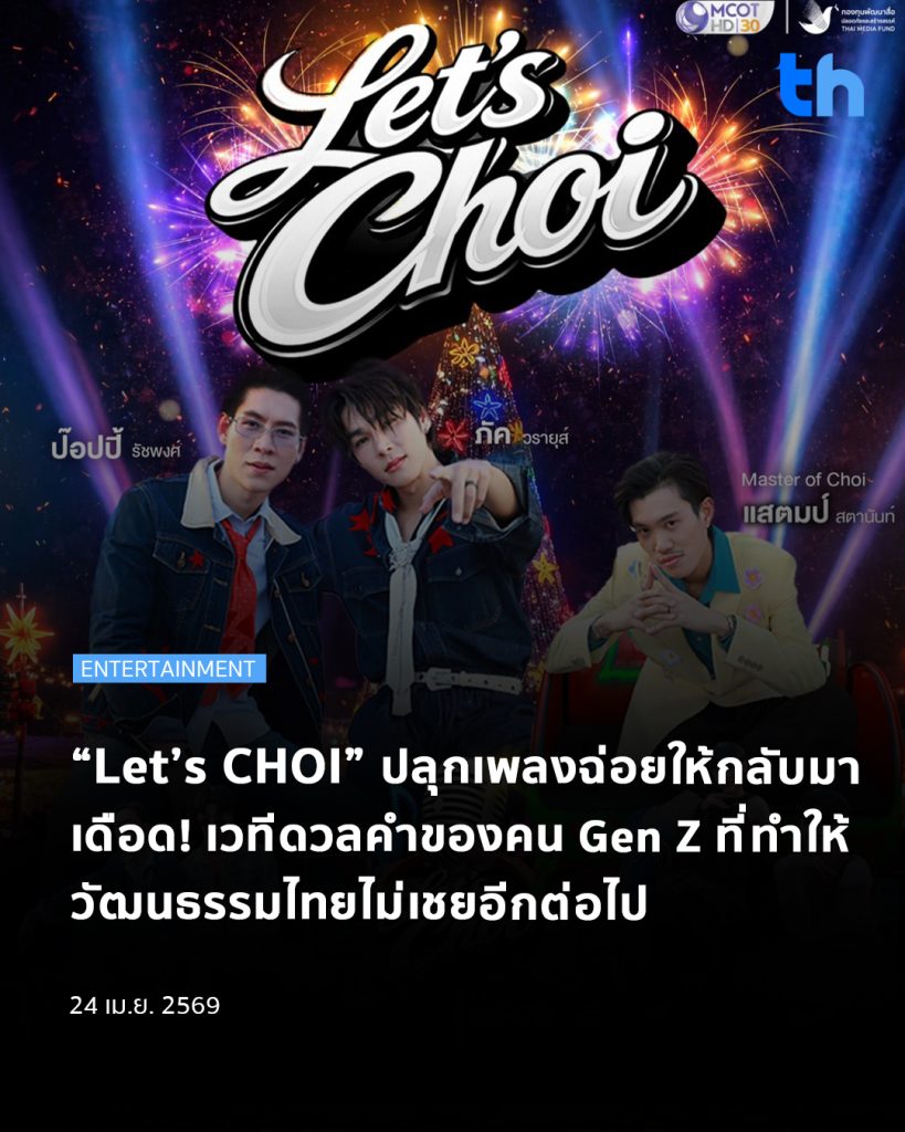 “Let’s CHOI” ไม่ใช่แค่รายการแข่งขัน แต่คือการเชื่อมอดีตสู่ปัจจุบัน ผ่านเสียงเพลงของคนรุ่นใหม่และเป็นอีกก้าวสำคัญของการส่งต่อ Soft Power ไทย ให้กลับมาโดดเด่นบนเวทีร่วมสมัยอีกครั้ง