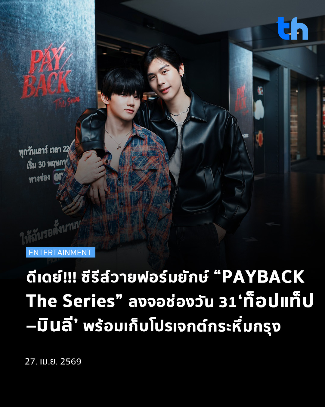 นอกจากการเตรียมลงจอแล้ว สองนักแสดงนำ “ท็อปแท็ป-มินลี” ยังได้ร่วมสร้างกระแสความฮือฮาด้วยการไปเก็บโปรเจกต์ทีเซอร์ที่ขึ้นจอ LED รอบพื้นที่ศูนย์การค้าสยามพารากอน โดยทั้งคู่ผลัดกันโพสท่าและสลับบทบาทเป็นทั้งช่างภาพและนายแบบ เก็บโมเมนต์ความประทับใจแบบรัว ๆ ท่ามกลางบรรยากาศใจกลางเมือง สร้างความฟินให้แฟนๆ ที่ได้พบเห็นอย่างใกล้ชิด ซึ่งโปรเจกต์พิเศษนี้มีให้ชมตั้งแต่วันที่ 25 – 30 เมษายนนี้เท่านั้น ใครที่อยากสัมผัสโมเมนต์สุดเอ็กซ์คลูซีฟแบบใกล้ชิดต้องไม่พลาด พร้อมปิดท้ายด้วยการเชิญชวนให้ติดตามเรื่องราวของ “ซัน” และ “เจย์” สองตัวละครหลักที่จะพาผู้ชมดำดิ่งสู่โลกของความรักท่ามกลางการล้างแค้นและการแข่งขันในวงการมายา กับ “PAYBACK The Series” ที่จะออกอากาศตอนแรกวันเสาร์ที่ 30 พฤษภาคมนี้ เวลา 22:30 น. ทางช่องวัน 31