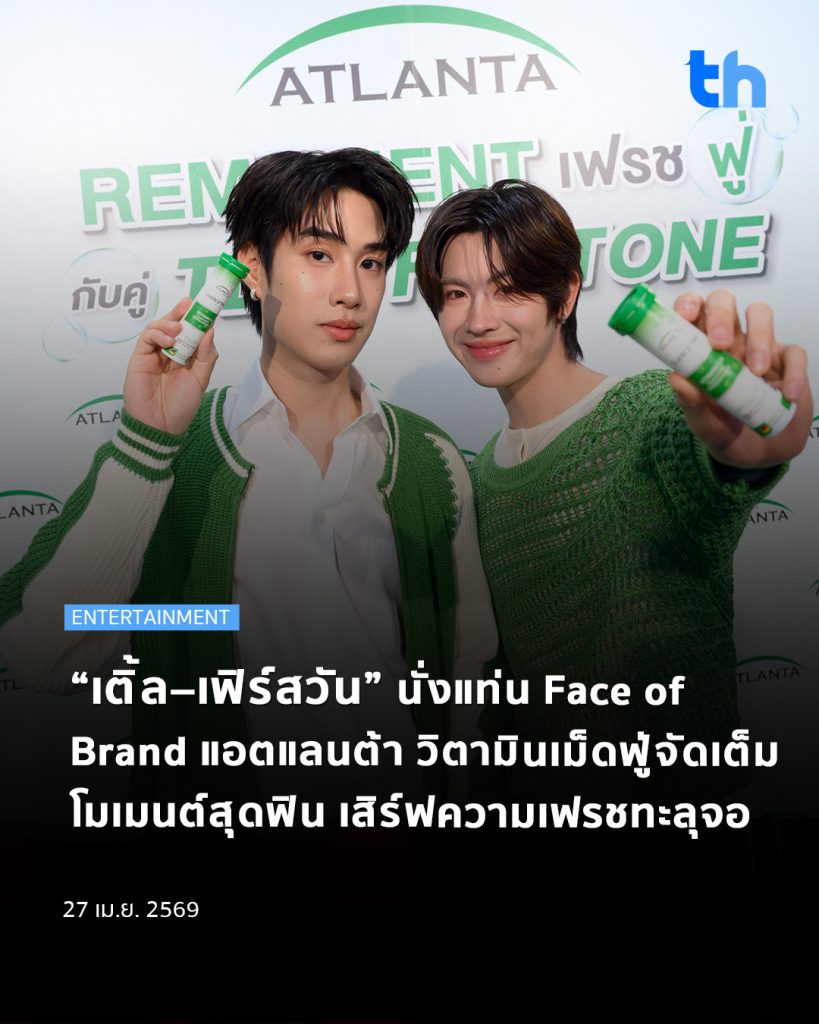 เติมพลังความสดชื่นให้ชีวิตเฟรชแบบฟิน ๆ แอตแลนต้า (ATLANTA) วิตามินเม็ดฟู่ มาตรฐานการผลิต ก้าวสู่ปีที่ 2 เปิดตัวสองนักแสดงหนุ่มสุดฮอต เติ้ล–มติมันท์ ศรีบุญเรือง และ เฟิร์สวัน–วรรณกร เรืองรัตน์ คู่จิ้นมาแรงแห่งยุค ที่เคมีลงตัวสุด ๆ นั่งแท่น Face of Brand ตัวแทนของการใส่ใจตัวเอง และความสดใสแบบไม่ต้องปรุงแต่ง สู่ความเฟรชที่ทุกคนเข้าถึงได้ พร้อมจัดงานเปิดตัวสุดเอ็กซ์คลูซีฟ “ATLANTA REMOMENT เฟรชฟู่ กับคู่ TLE – FIRSTONE” ณ Union Mall ชั้น G จัดเต็มทุกโมเมนต์ไปกับมินิคอนเสิร์ตและโชว์สุดพิเศษ เรียกเสียงกรี๊ดสนั่นและบูสต์เอนเนอร์จี้ตลอดงาน