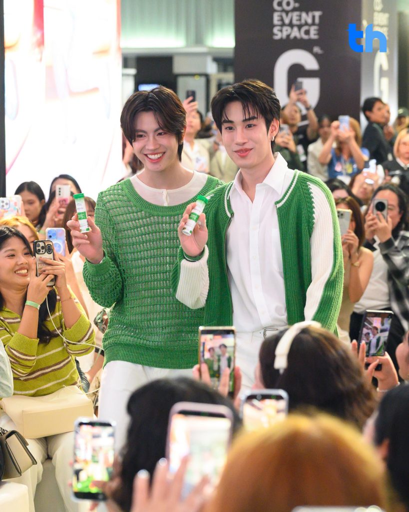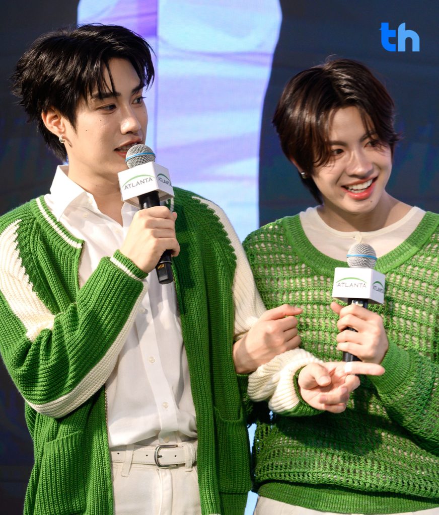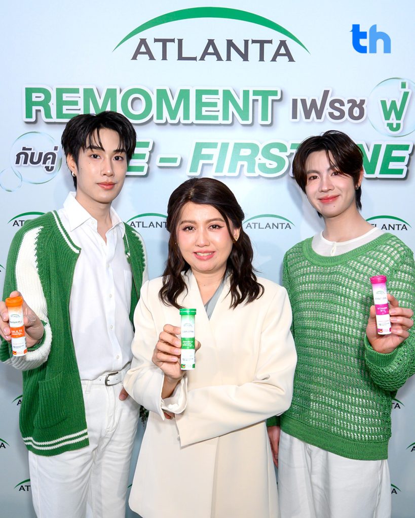 เติ้ล–เฟิร์สวัน เล่าพร้อมรอยยิ้มว่า “วันนี้ดีใจมาก ๆ ที่ได้มาเจอกับทุกคน ก่อนหน้านี้พวกเรามีโอกาสได้ร่วมงานกับแอตแลนต้ามาแล้ว แต่ครั้งนี้พิเศษแบบสุด ๆ เพราะมาในฐานะ Face of Brand บอกเลยว่าตื่นเต้นและเป็นเกียรติสุด ๆ ครับ ที่สำคัญ วิตามินเม็ดฟู่ แอตแลนต้า เป็นไอเทมลับที่เป็นตัวช่วยของพวกเรา เพราะตั้งแต่ได้ลองทานก็อยู่ติดตัวตลอด อย่างช่วงที่ PM 2.5 หนัก ๆ มลภาวะเยอะ ก็จะดูแลตัวเองเป็นพิเศษด้วย ATLANTA Quercetin Plus หลอดสีเขียว รส Tropical Fruit ส่วนช่วงไหนที่ต้องจำบทหนัก ๆ พวกเราก็จะดูแลด้วย ATLANTA Cyncobal หลอดสีม่วง รสราสป์เบอรี่และสตรอว์เบอร์รี่ และที่ขาดไม่ได้คือ ATLANTA Physocal หลอดสีส้ม เวลาเดินทางหรือทำงานเยอะ ๆ ตัวนี้ช่วยเติมความสดชื่น และทำให้รู้สึกบาลานซ์มากขึ้นครับ”