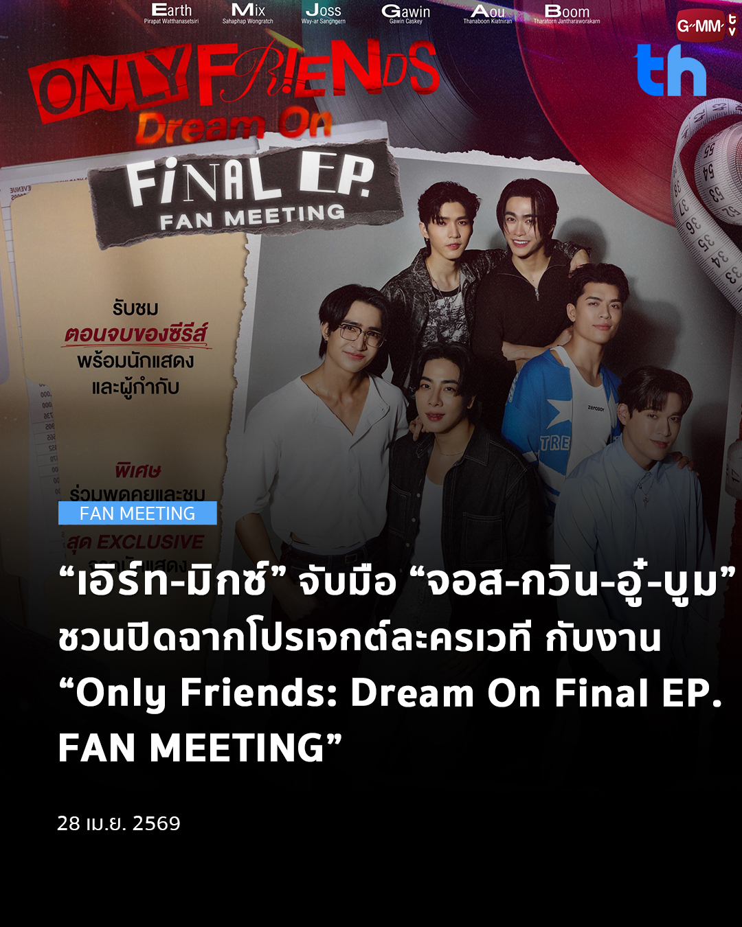สำหรับผู้ที่สนใจเข้าร่วมงาน “Only Friends : Dream On Final EP. FAN MEETING” สามารถติดตามรายละเอียดเพิ่มเติมได้ที่ Thaiticketmajor และ Facebook / Instagram / X / TikTok / YouTube / Weibo: GMMTV